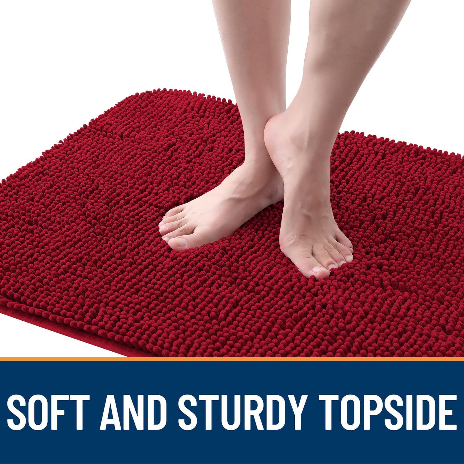 OLANLY Dog Door Mat for Muddy Paws 34x21, Absorbs Moisture and Dirt, Absorbent Non-Slip Washable Doormat, Quick Dry Chenille Mud Mat for Dogs, Entry Indoor Entryway Carpet for Inside Floor, Red