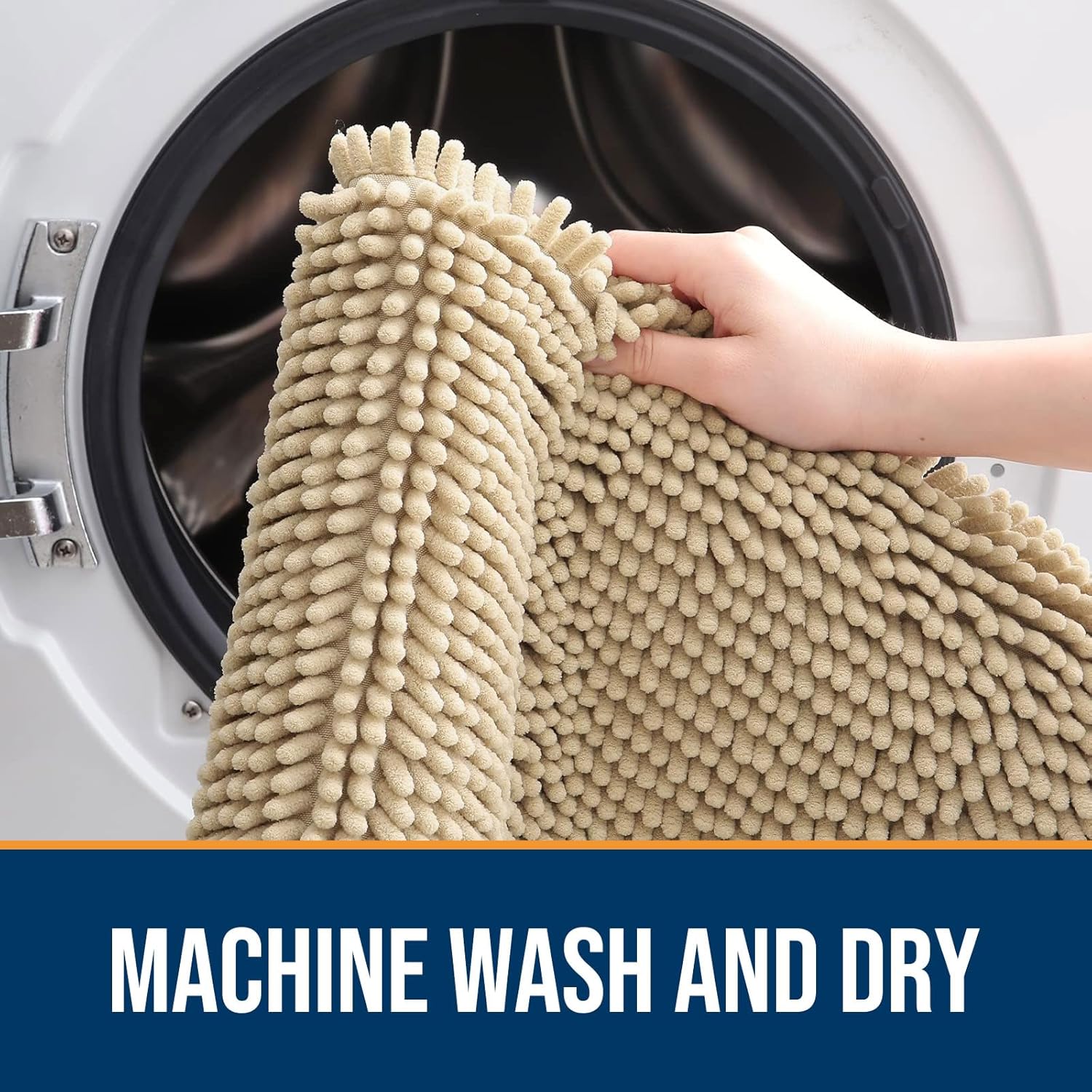 OLANLY Dog Door Mat for Muddy Paws 54x32, Absorbs Moisture and Dirt, Absorbent Non-Slip Washable Doormat, Quick Dry Chenille Mud Mat for Dogs, Entry Indoor Entryway Carpet for Inside Floor, Beige