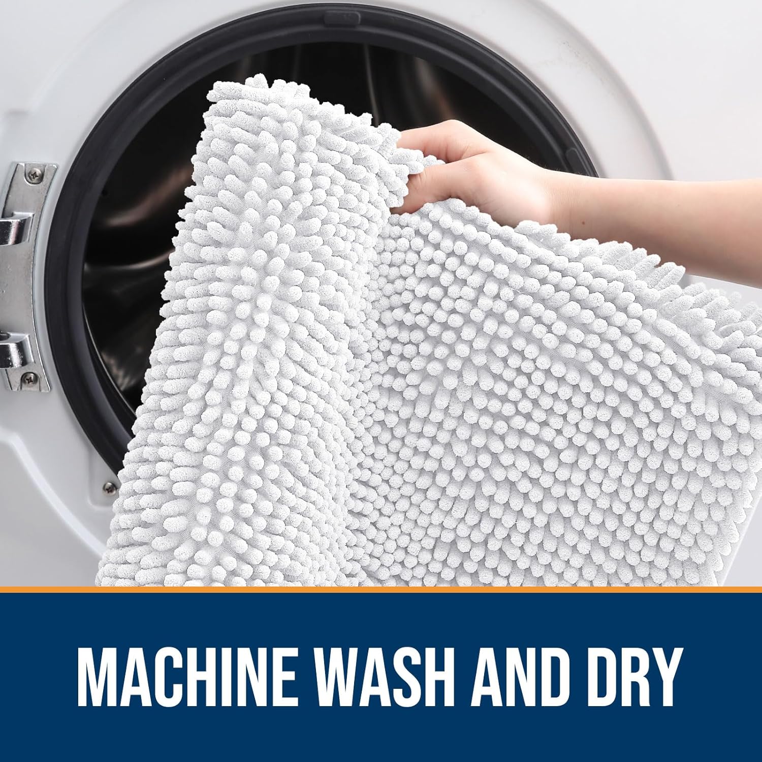 OLANLY Dog Door Mat for Muddy Paws 44x32, Absorbs Moisture and Dirt, Absorbent Non-Slip Washable Doormat, Quick Dry Chenille Mud Mat for Dogs, Entry Indoor Entryway Carpet for Inside Floor, White