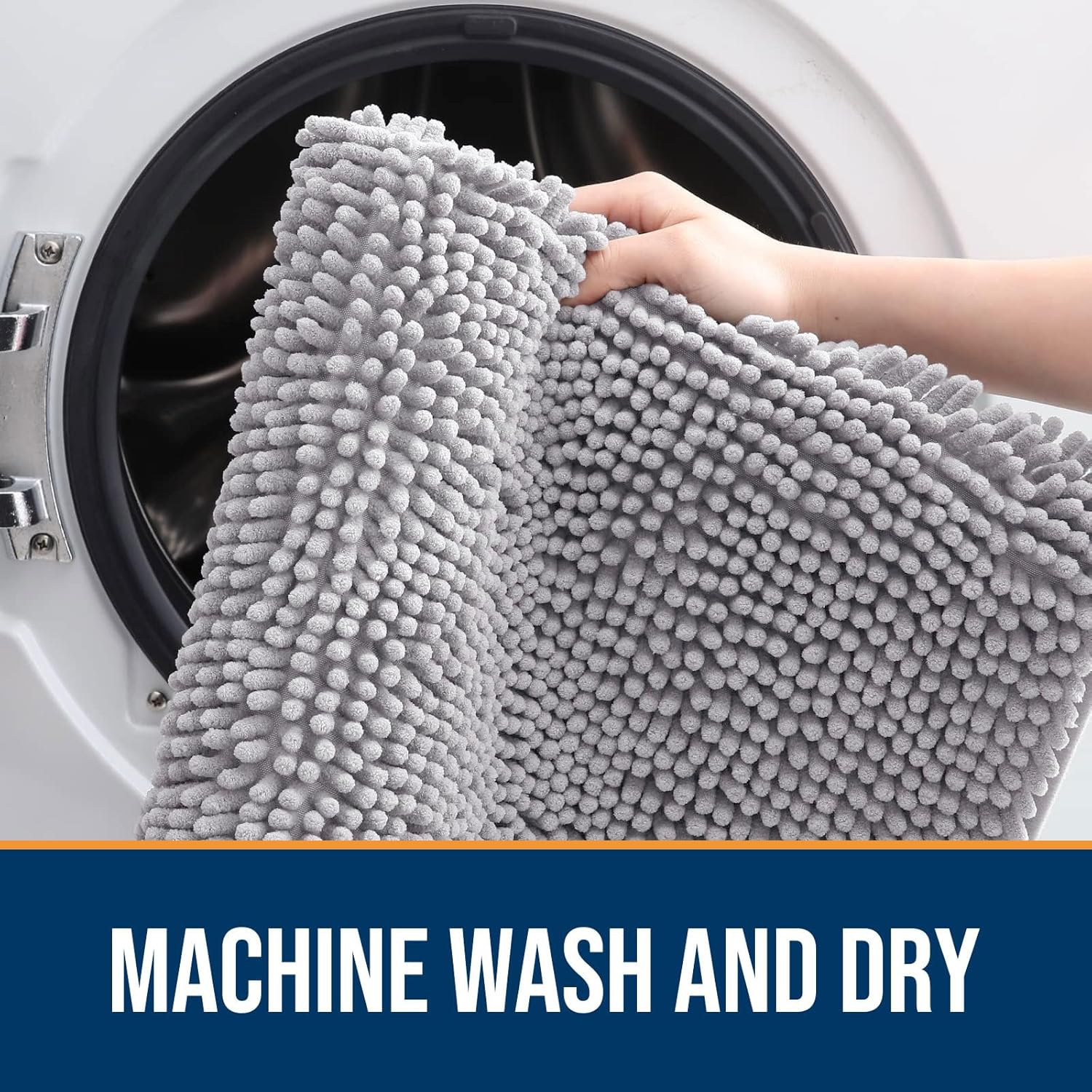 OLANLY Dog Door Mat for Muddy Paws 34x21, Absorbs Moisture and Dirt, Absorbent Non-Slip Washable Doormat, Quick Dry Chenille Mud Mat for Dogs, Entry Indoor Entryway Carpet for Inside Floor, Light Grey
