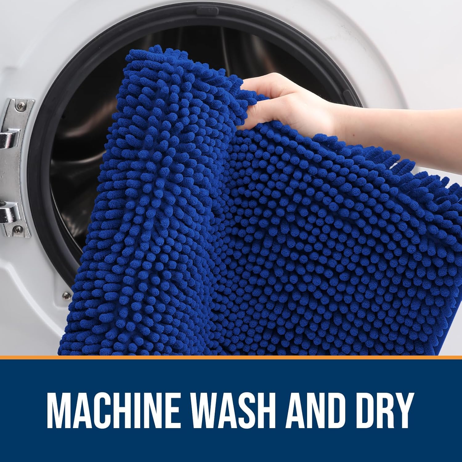 OLANLY Dog Door Mat for Muddy Paws 59x20, Absorbs Moisture and Dirt, Absorbent Non-Slip Washable Doormat, Quick Dry Chenille Mud Mat for Dogs, Entry Indoor Entryway Carpet for Inside Floor, Royal Blue