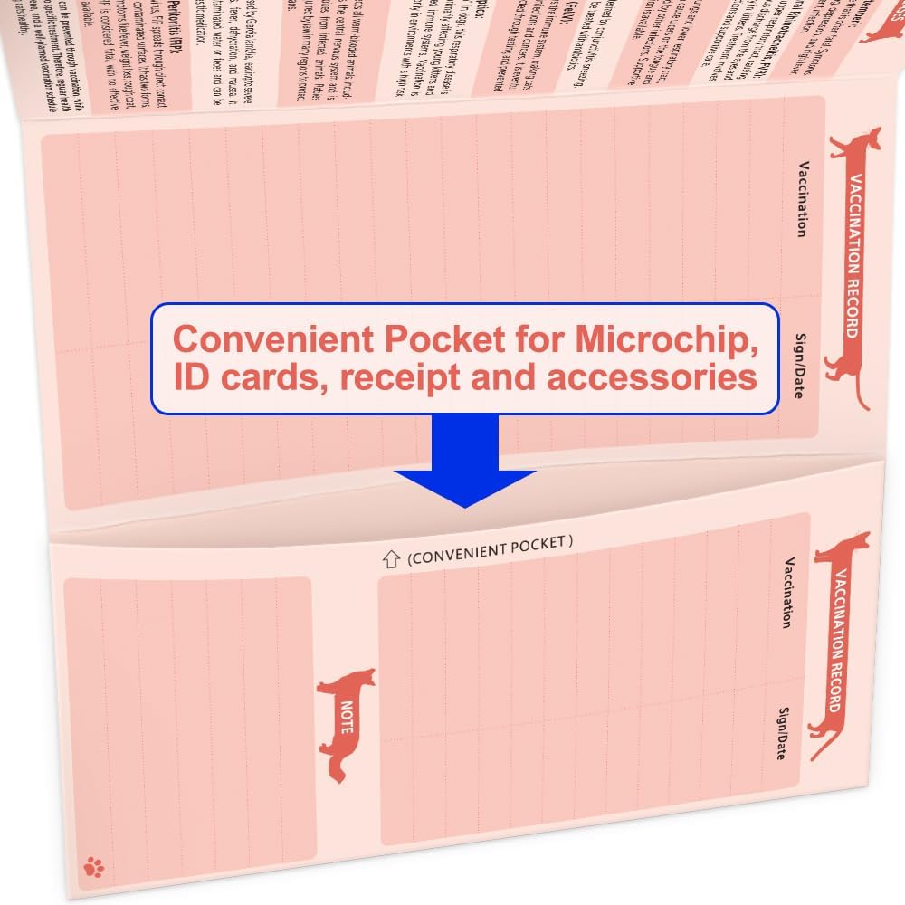 - [Measurement] Unfolded Size: 10.5 x 8 Inch; Folded Size: 3.6 x 7.8 Inch, Tri-fold design for compact storage and portability. Peach-colored double-sided printing ensures clear tracking of pet's medical details and immunization record.
