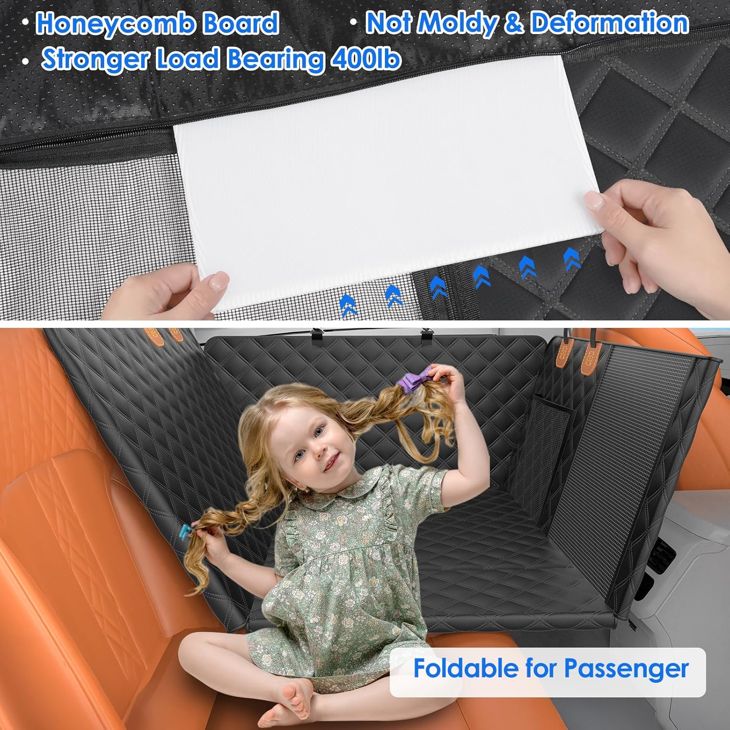 - Expanded Backseat Space: Expanded to 52 x 24.5 inches, providing more space for dogs to play and preventing them from falling or sliding off the seat during sudden braking or parking. Suitable for large dogs, elderly dogs or multi-dog families.