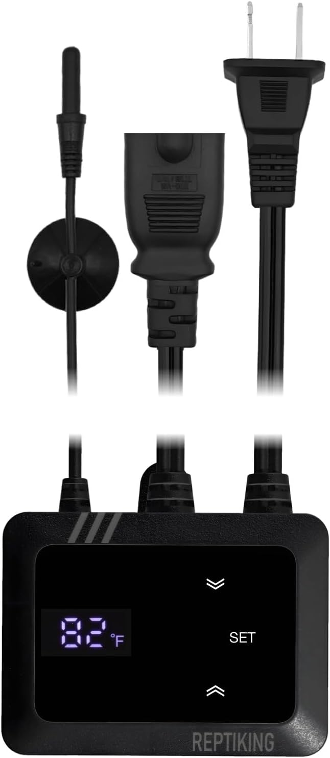 - 68β - 122β or 20Β°C -50Β°C can be set in a range that meets the temperature settings of most reptiles in their natural habitat. Maximum load of 200W heat lamp, UL certified power cord is safer and more reliable.