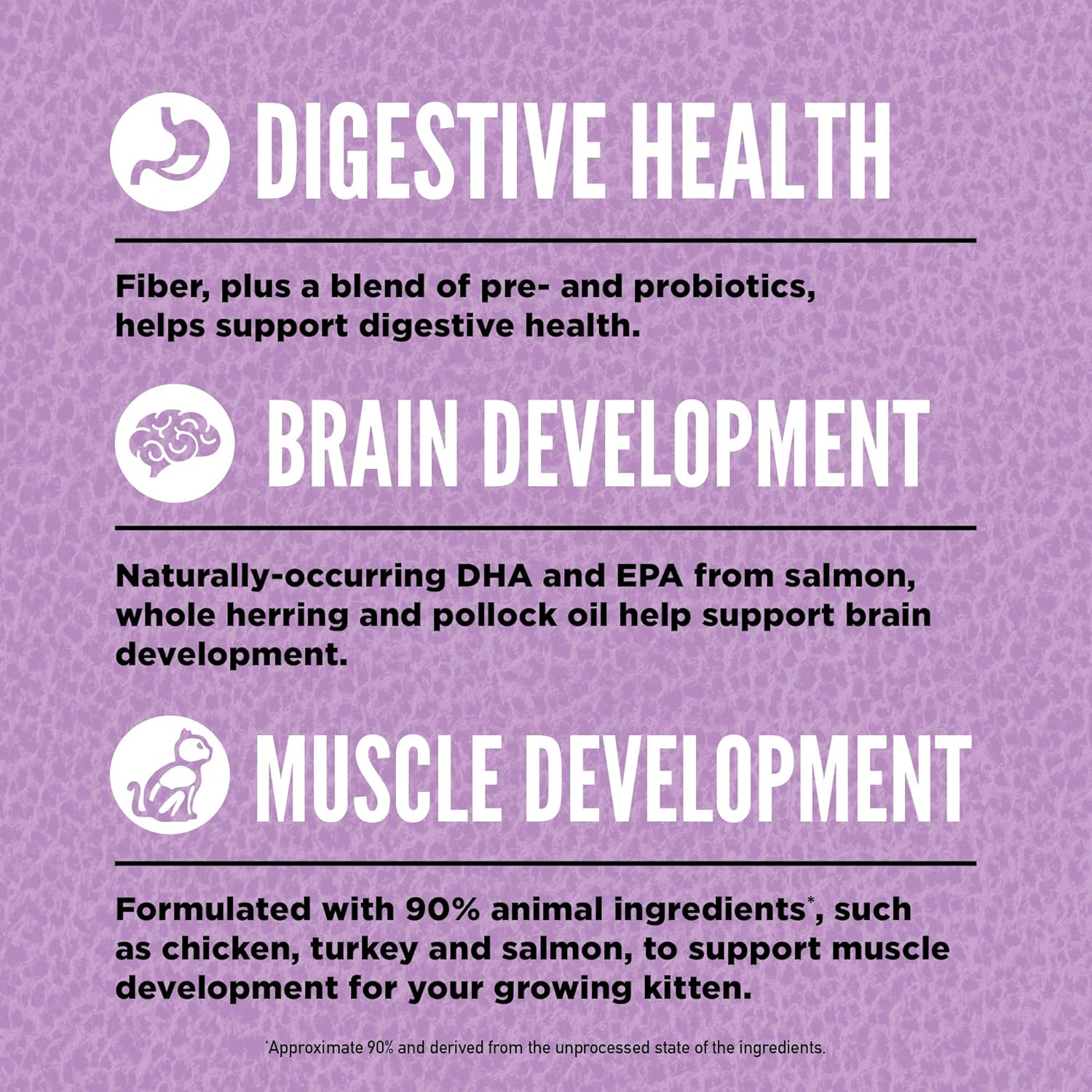 - This nourishing cat food kibble helps support your kittenโs Digestive Health, Brain Health and Muscle Development.