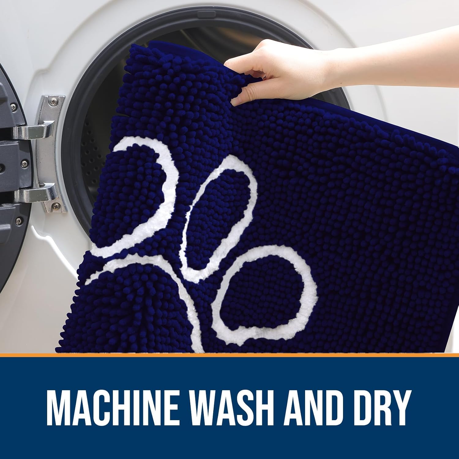 OLANLY Door Mat for Muddy Dog Paws 59x24, Ultra Absorbent Chenille Mud Doormat with Paw Print Design, Non-Slip Washable Doormat for Indoor Entryway, Quick-Dry Pet Bed Mats for Dirty Dogs, Navy Blue