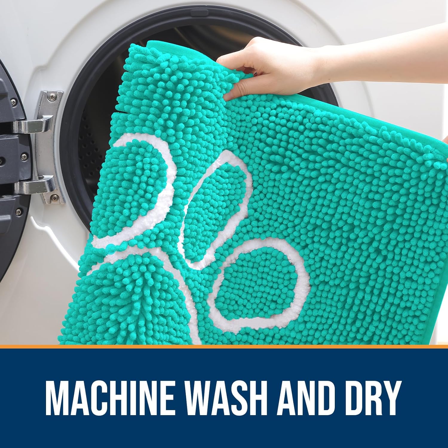OLANLY Door Mat for Muddy Dog Paws 59x35, Ultra Absorbent Chenille Mud Doormat with Paw Print Design, Non-Slip Washable Doormat for Indoor Entryway, Quick-Dry Pet Bed Mats for Dirty Dogs, Teal