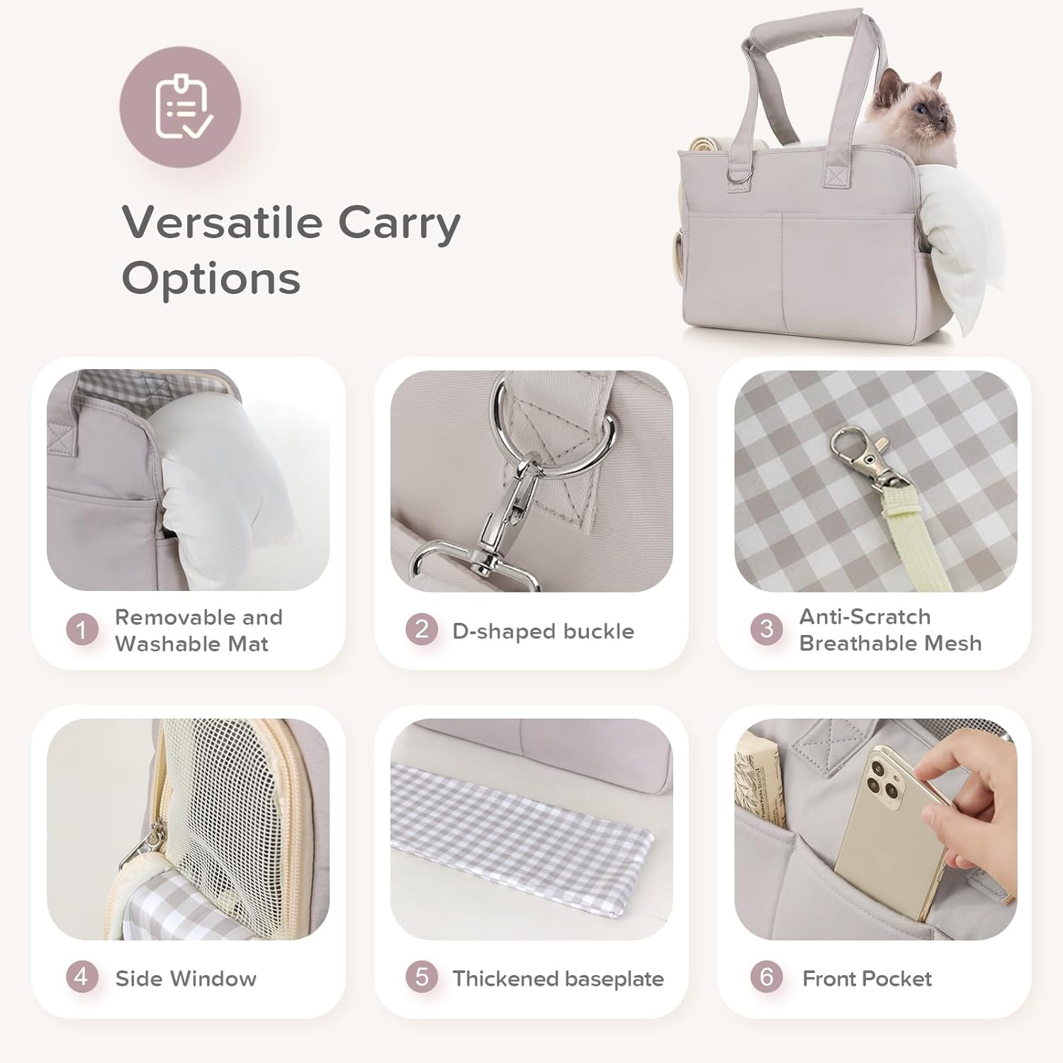 - Easy to Carry & Clean: This dog carrier for small dogs weighs only 1.4 pounds (0.63kg) and features a reinforced handle for reduced strain, ensuring effortless travel. The soft and cozy pet carrier is fully detachable for easy cleaning, simply washable with water, maintaining its cleanliness and freshness with ease.
