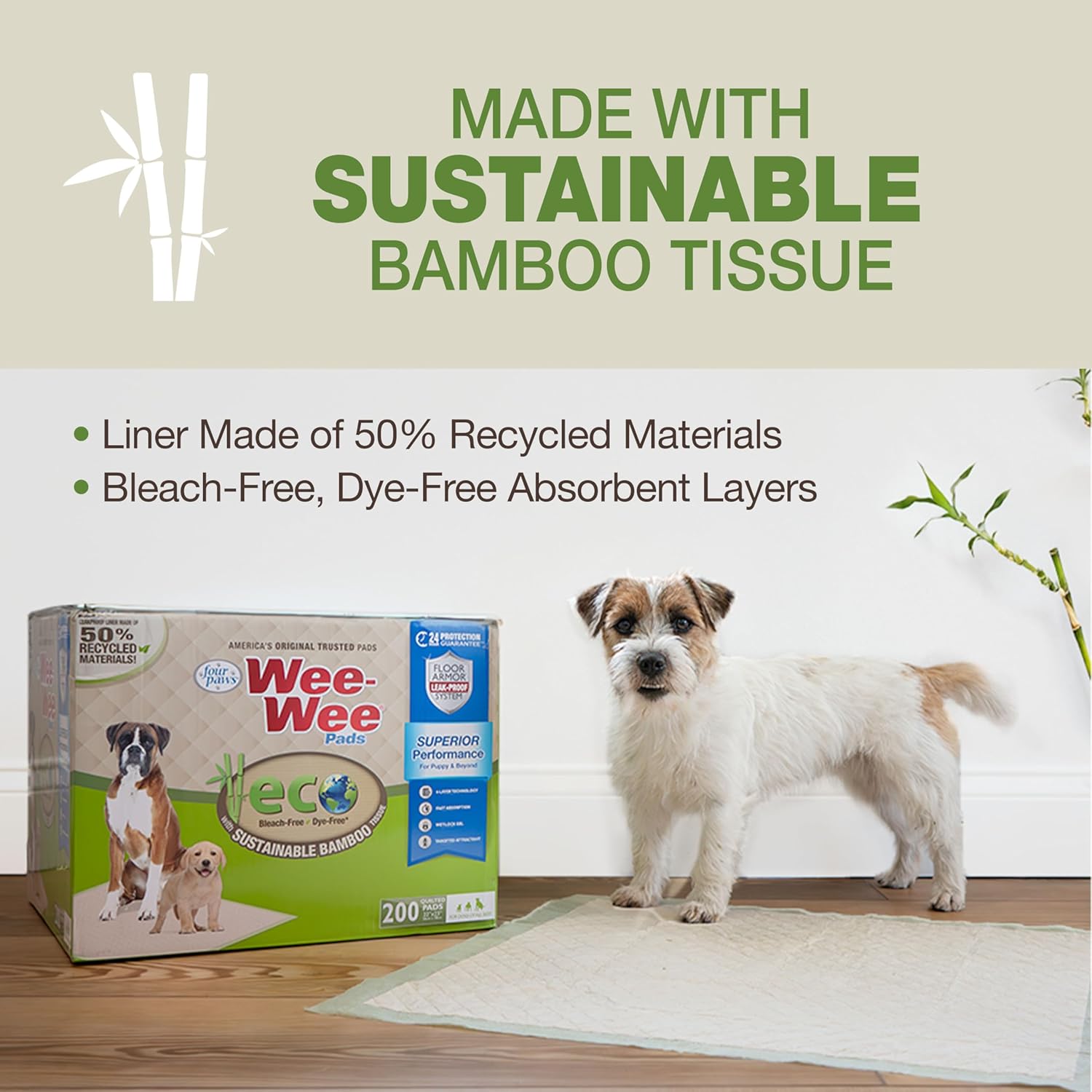 Four Paws Wee-Wee Superior Performance Bamboo Pee Pads for Dogs, Earth Friendly Dog & Puppy Potty Training Pads, Crate Liners, Housebreaking Supplies, 22" x 23" (50 Count)