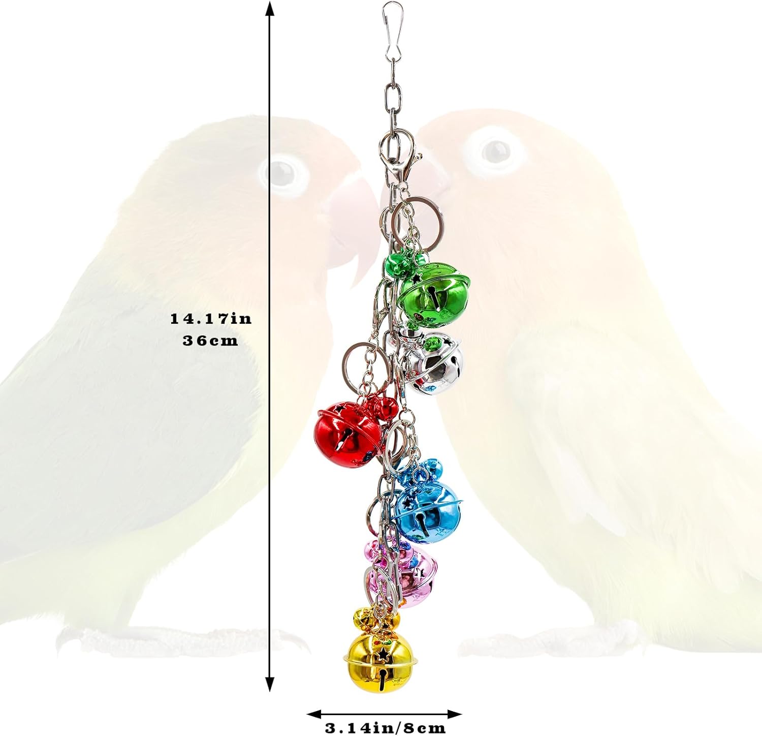 - Interactive and Decorative Design: Our bird bell toys feature colorful metal bells connected in series through stainless steel metal chains. These vibrant toys are perfect for hanging in bird cages, providing entertainment and a visually appealing decoration that adds a splash of color to your bird’s environment.