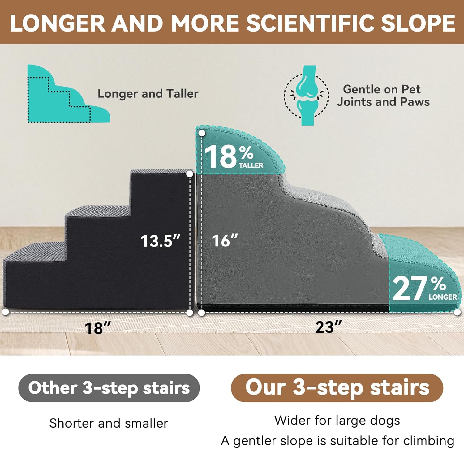- Multi Sizes Fit Every Need: Zerbuger foam dog stair is not suitable for large dogs, please use it for pets under 50lbs! 3-steps are suitable for chairs and couches up to 20inch, 4-steps are suitable for high sofas, beds and window up to 25inch. Please confirm whether the size is suitable for your love pet first.