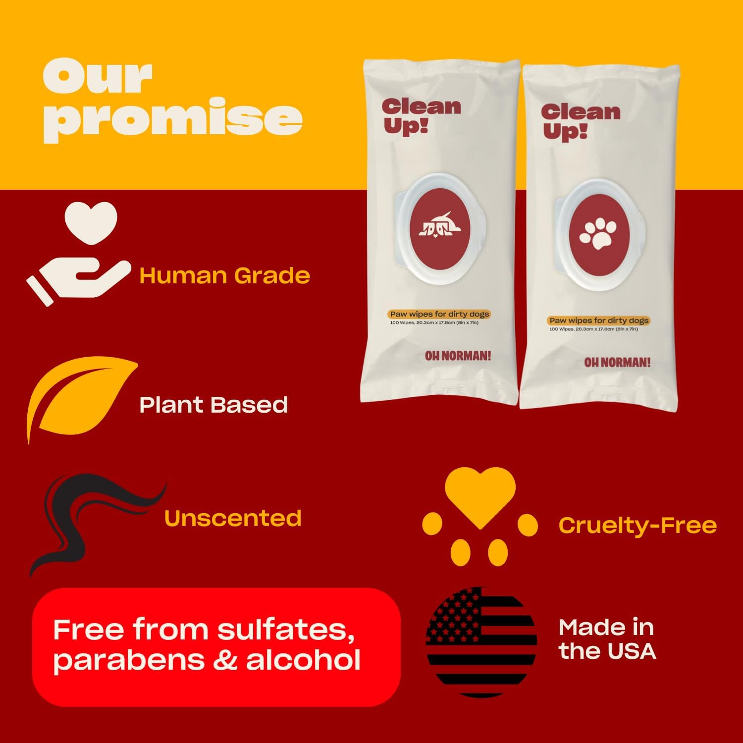 - CLEAN UP PAW WIPES: Our paw wipes are perfect for your dirty dogs! Each wipe is human grade and unscented. Each package contains 100, 12x8" wipes.
