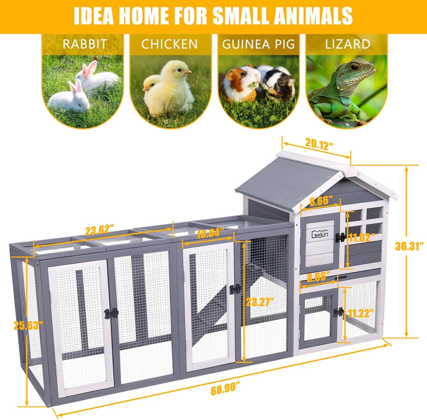- SPACIOUS & VERSATILE: Offers ample exercise space and a private sleeping area for rabbits, guinea pigs, chickens, ducks, and more. (Overall size: 70''L x 24''W x 36''H)