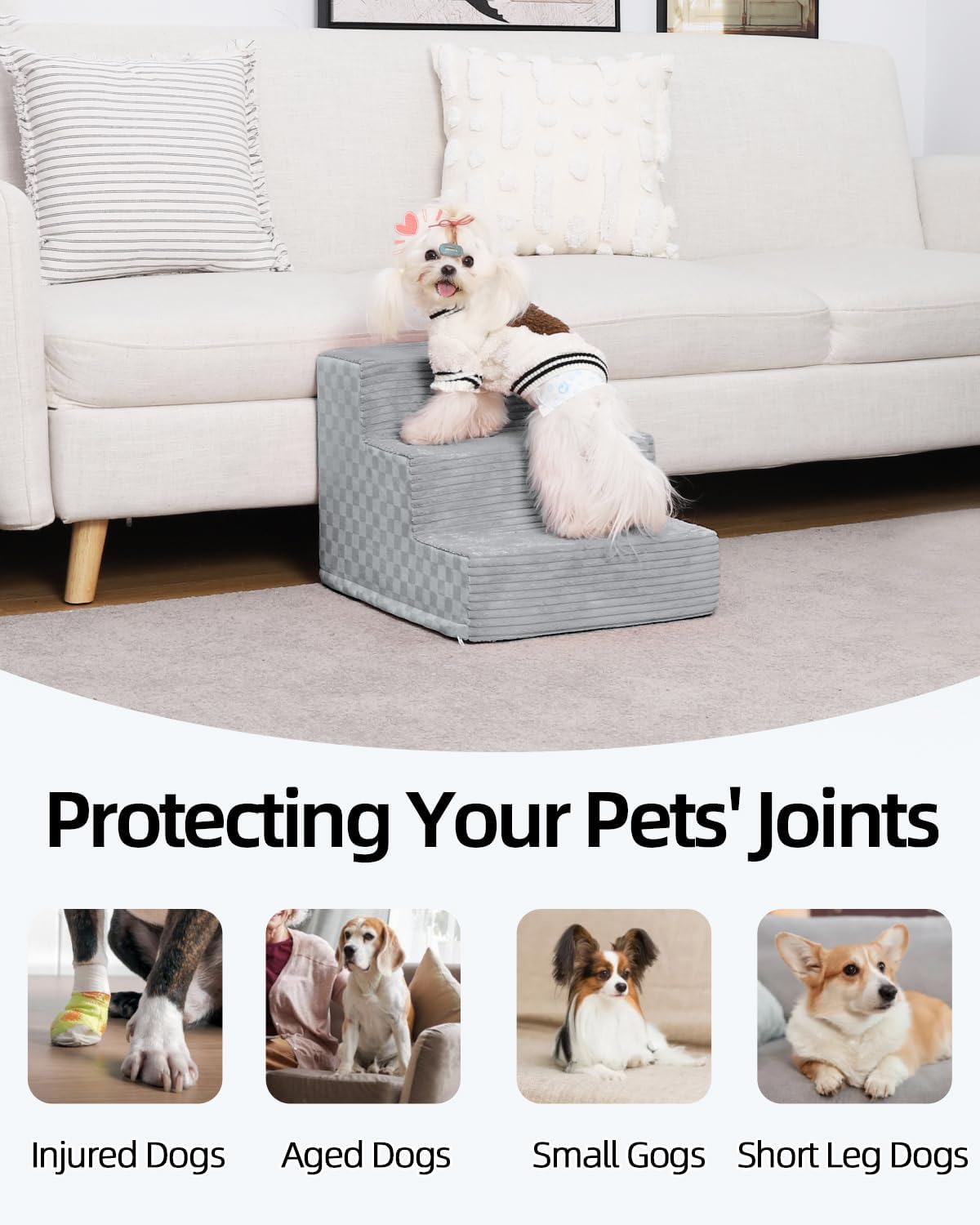 - 【Cleaning Tip】: The pet stairs have a smooth zip for easy removal of the foam core cover. Please note that The inner foam is not washable or dry-cleanable. Just a heads-up: Reassembling the cover after washing will take a little time.