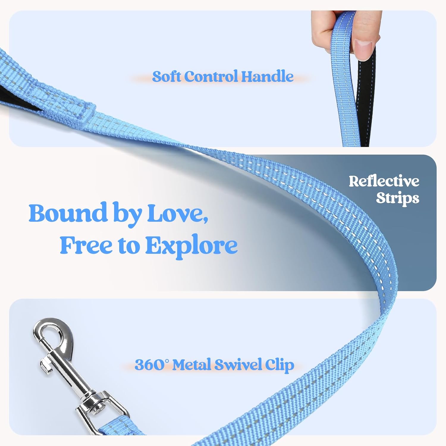 - Dog Harness with Leash Set๏ผThe color-matching harness and leash with reflective bands make it fashion and visible for pet outing. The leash is 5.15ft in length, with an anti-tangling clip and a palm-friendly handle