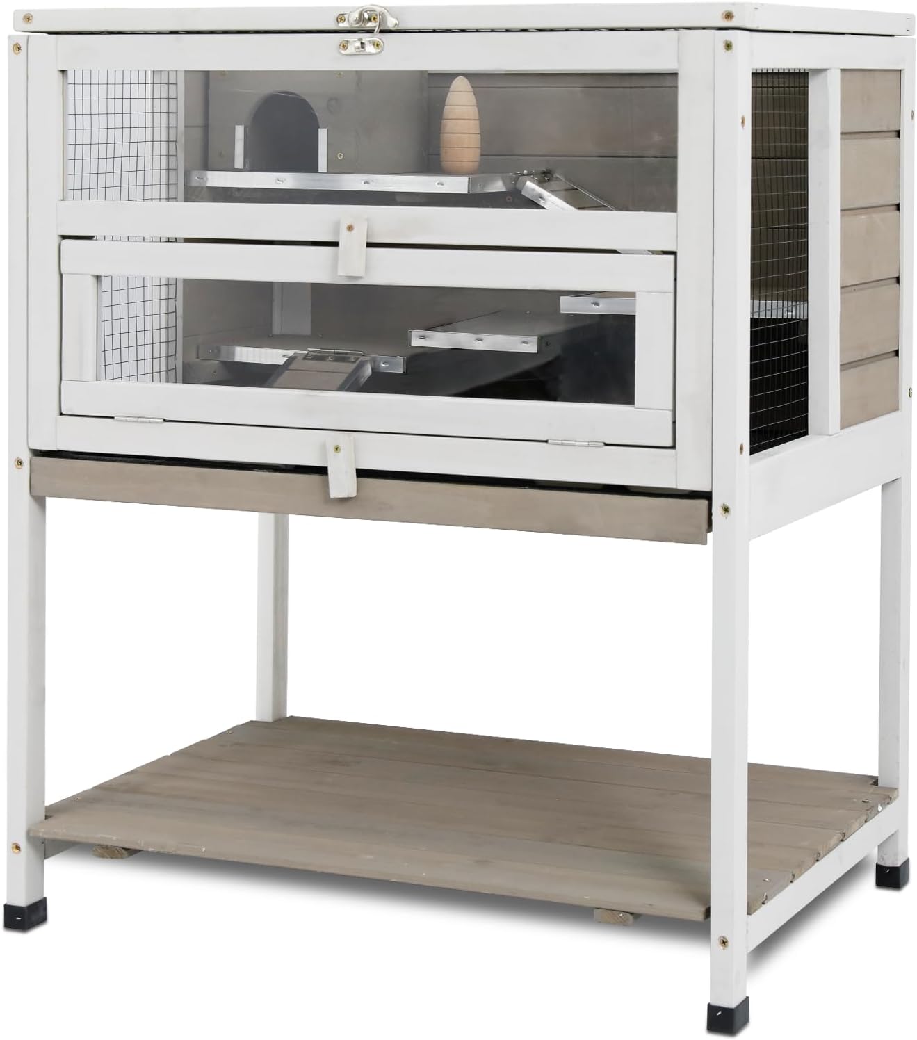 PetsCosset Guinea Pig Cages Hamster Cage Indoor with Stand Storage Wooden Outdoor Small Animals Habitat with Hideout House Pull Out Tray