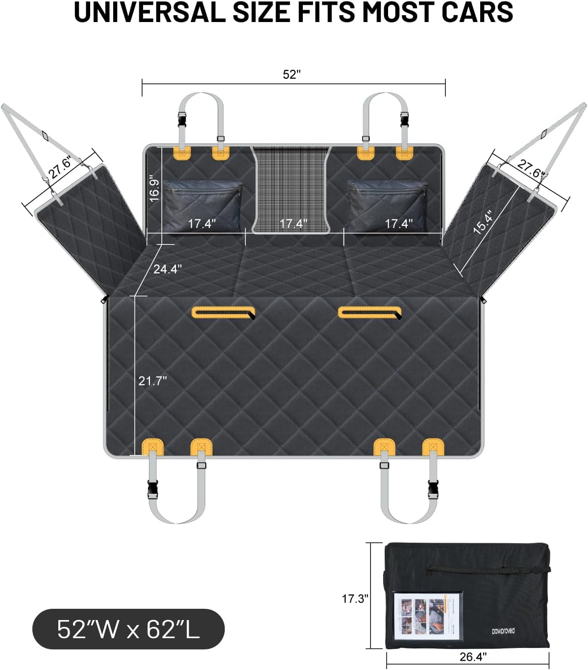 - Extended Activity Space: Our car hammock (52.3βW x 24.4βD) prevents footwell sliding, expands space by 40%, and ensures safety for movement and stretching to ease travel anxiety. Offers full rear-seat coverage, ideal for large breeds, older dogs, or multi-dog households.