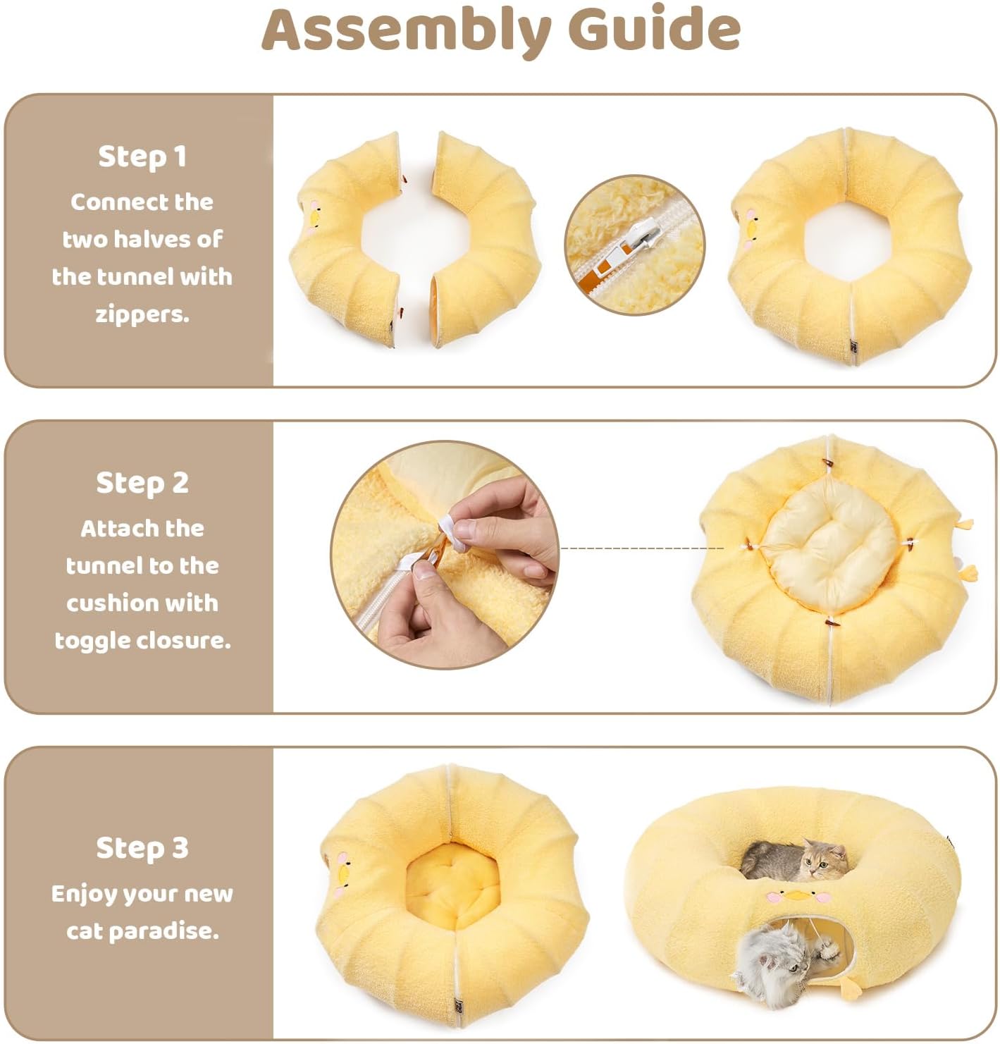 - Easy to Clean: With your convenience in mind, EHEYCIGA cat tunnel bed is effortless to assemble and quick to store. The removable cushion is machine washable.