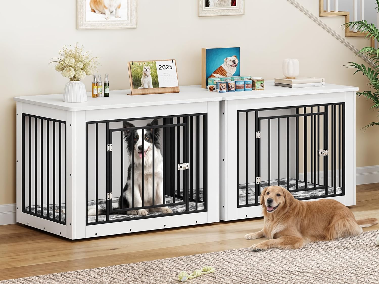- Versatile Stability: The YITAHOME double dog crate furniture adjustable feet pads that adapt to various floor surfaces for maximum stability; Perfectly designed for large dogs up to 80 lbs, providing a secure environment that remains stable even on uneven floors