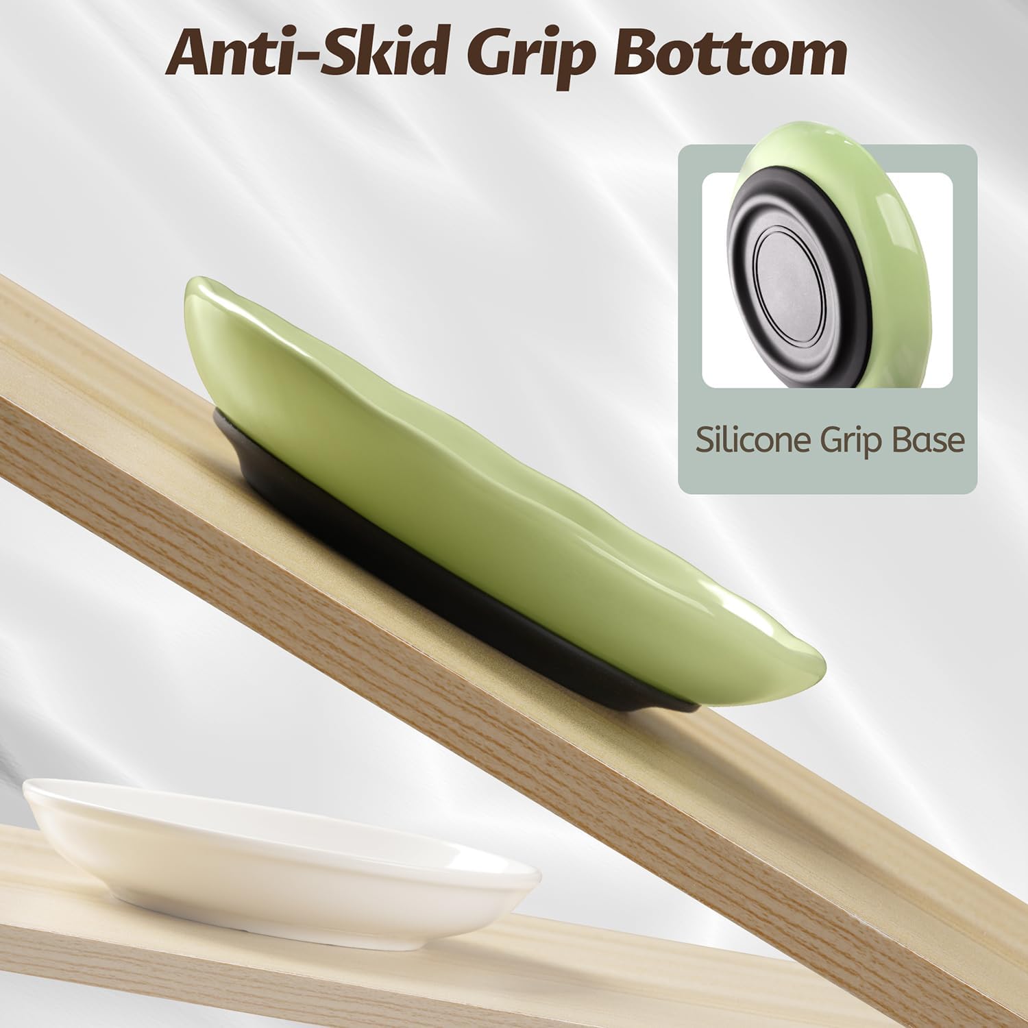 Non-Slip Cat Food Bowl,Healthy Ceramic Cats Bowls with Silicone Bottom, Anti-Whisker Fatigue Cat Dishes Set, Shallow & Wide Kitten Plates for Food and Water, 4 Pack