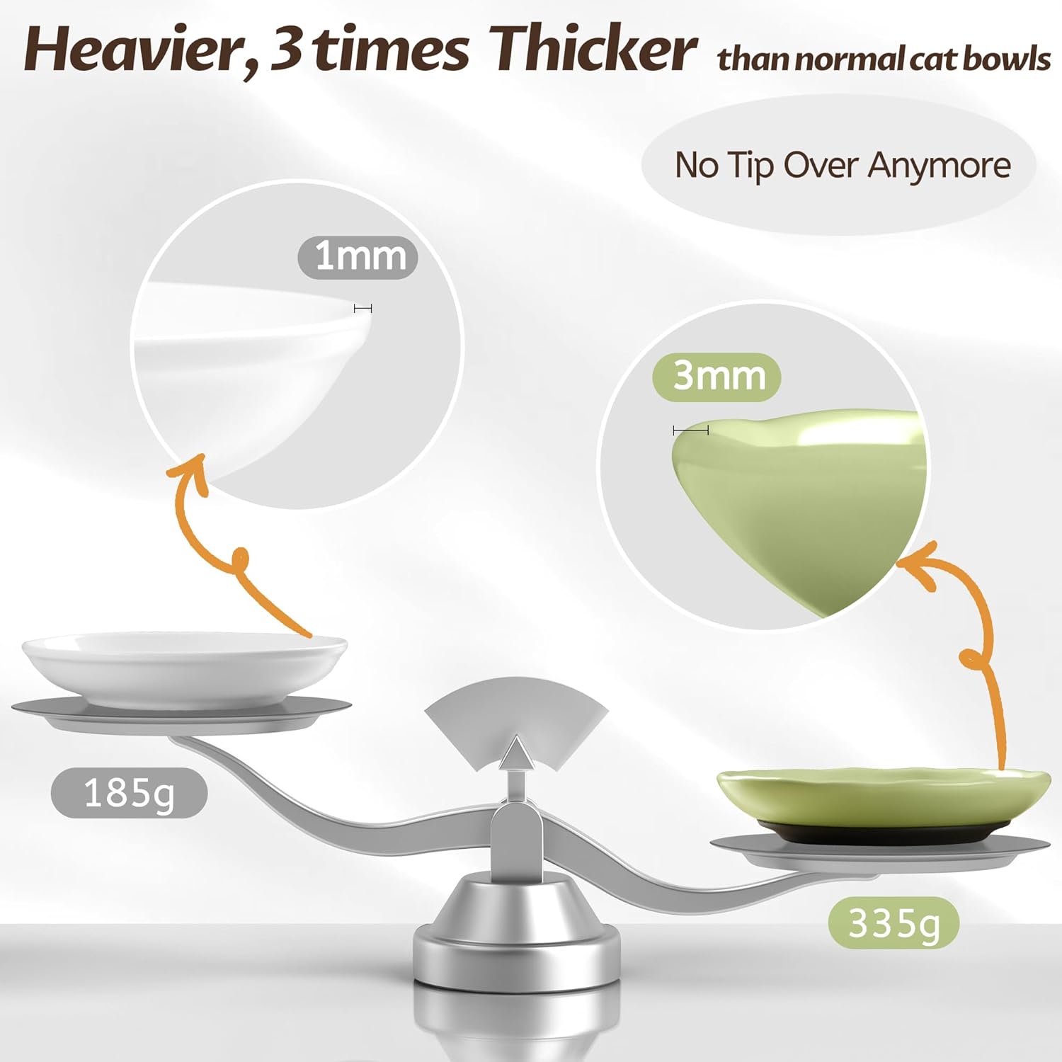 - 【Safe & Healthy Ceramic Material】: Our cat food bowls made of high-temperature fired food-grade ceramic are the same standard as human ceramic dishes, cadmium-free and lead-free, non-toxic and hygienic. You cat will get a healthier eating.