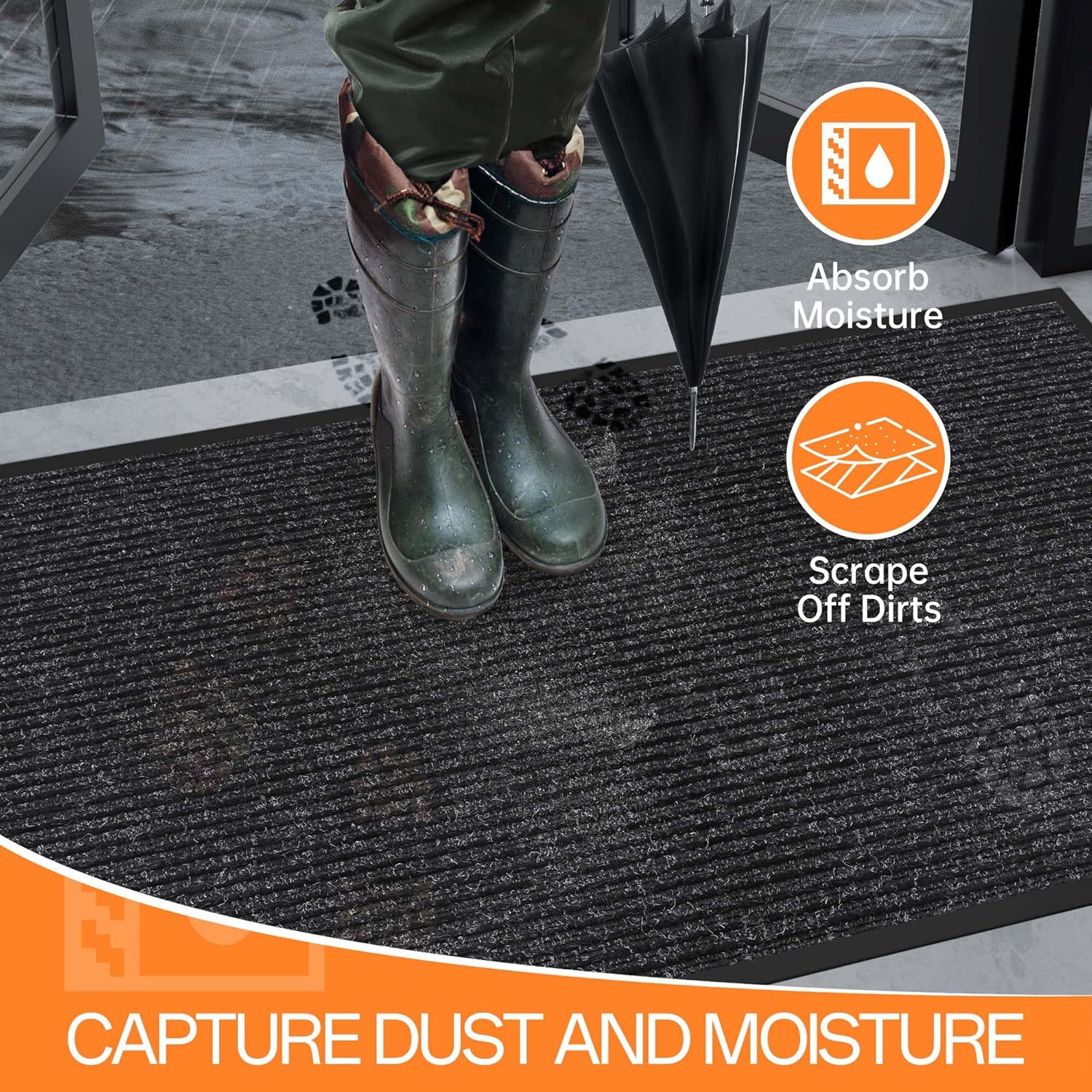- Deep Grooves Capture Dirt and Moisture: Say goodbye to dirt and moisture tracked into your home. Our commercial door mat effectively captures dirt, mud and moisture from shoes, keeping your floors clean and protecting them from potential damage.