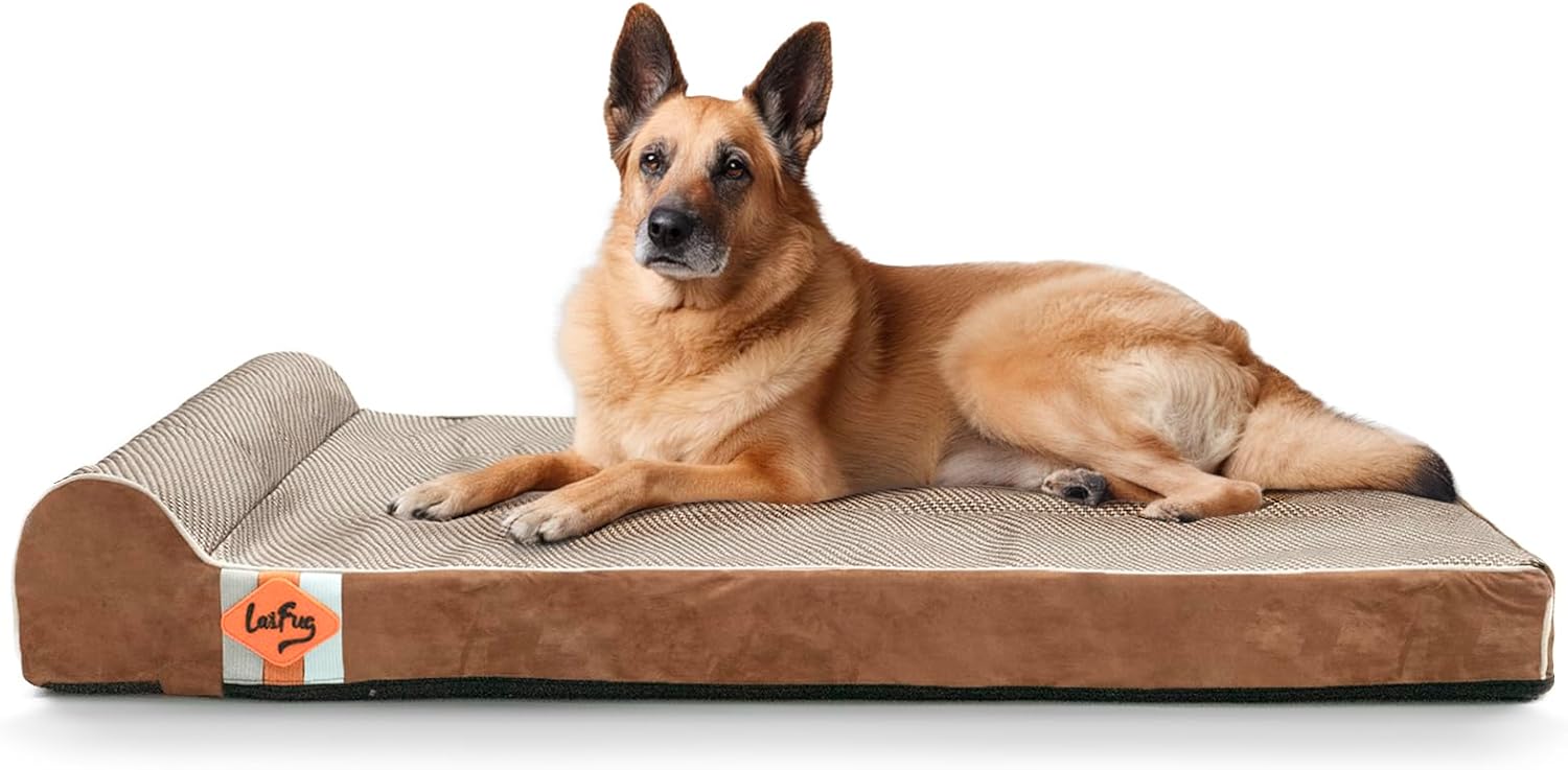 Laifug Orthopedic Memory Foam Extra Large Dog Bed with Pillow and Durable Waterproof Liner and Removable Washable Cover and Smart Design (Large (46" x 28" x 8"), Brown)