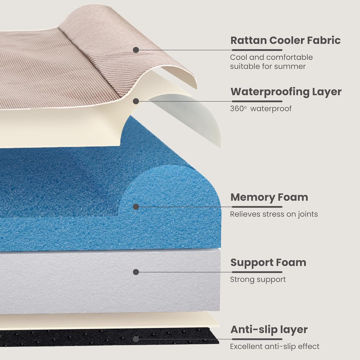 - Multi-Layered Sponge: The combination of high-density sponge support material on the bottom and comfortable premium memory foam on the top can keep your dog off the hard floor below while supporting and cushioning their body, can hold dogs within 25-100 lbs . Holds on easily without sinking, making it your pet's favorite sleeping spot.