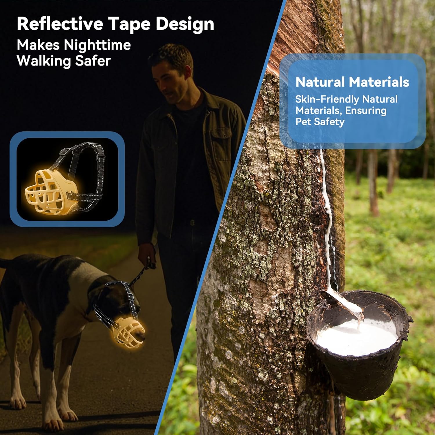 - Easy to Put on and Remove: Designed for Convenience, The Adjustable Straps on Our Dog Muzzle Allow for Quick and Secure Fitting. The Ergonomic Design Ensures a Hassle-Free Experience for Both You and Your Dog, Making it Ideal for Daily Walks, Training Sessions, Or Visits to the Vet. Reflective Strap Design Provides Night Travel Safety