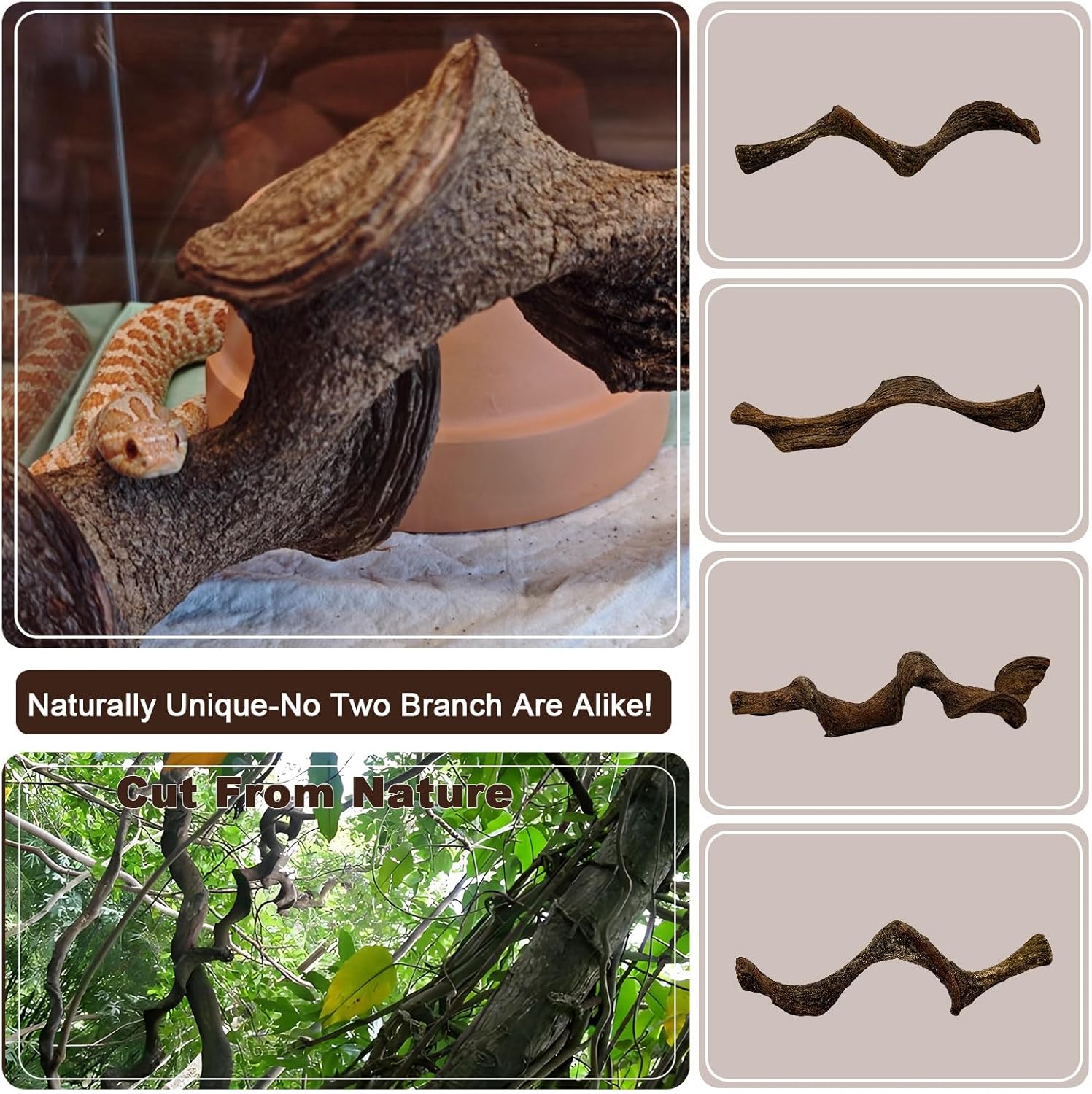 - 【Suitable for All Kinds of Terrariums】The reptile climbing branches from the jungle can seamlessly integrate into various pet habitat set - ups. Whether it's a rainforest - style, desert - style, or creative - style terrarium, they can be cleverly adapted to inject the beauty of nature and create a habitat space resembling the original natural environment.