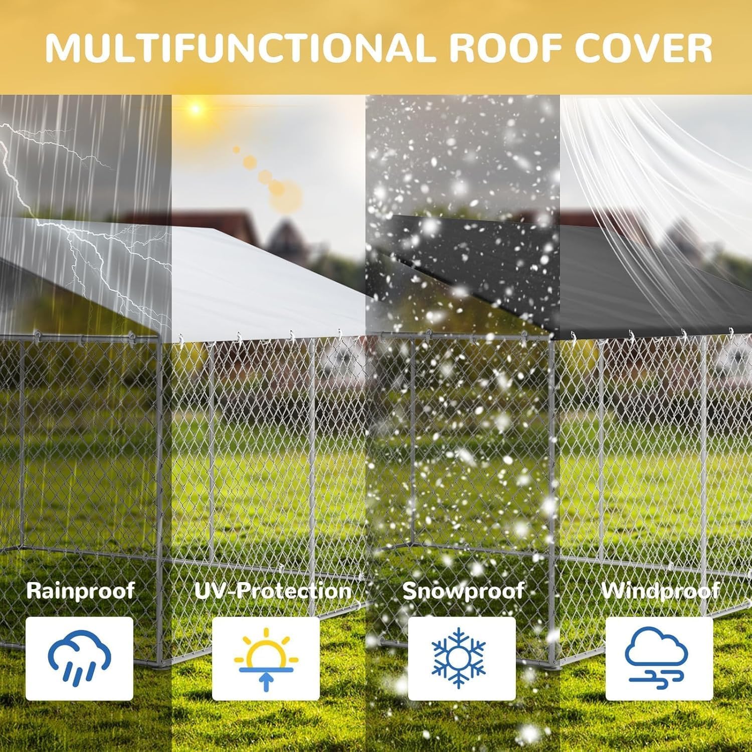 Outdoor Dog Kennel with Cover, Large Dog Run Fence House Big Cage Pen Enclosure, Heavy Duty Dogs Play Cage Pen Kennel (118" L x 118" W x 83" H)