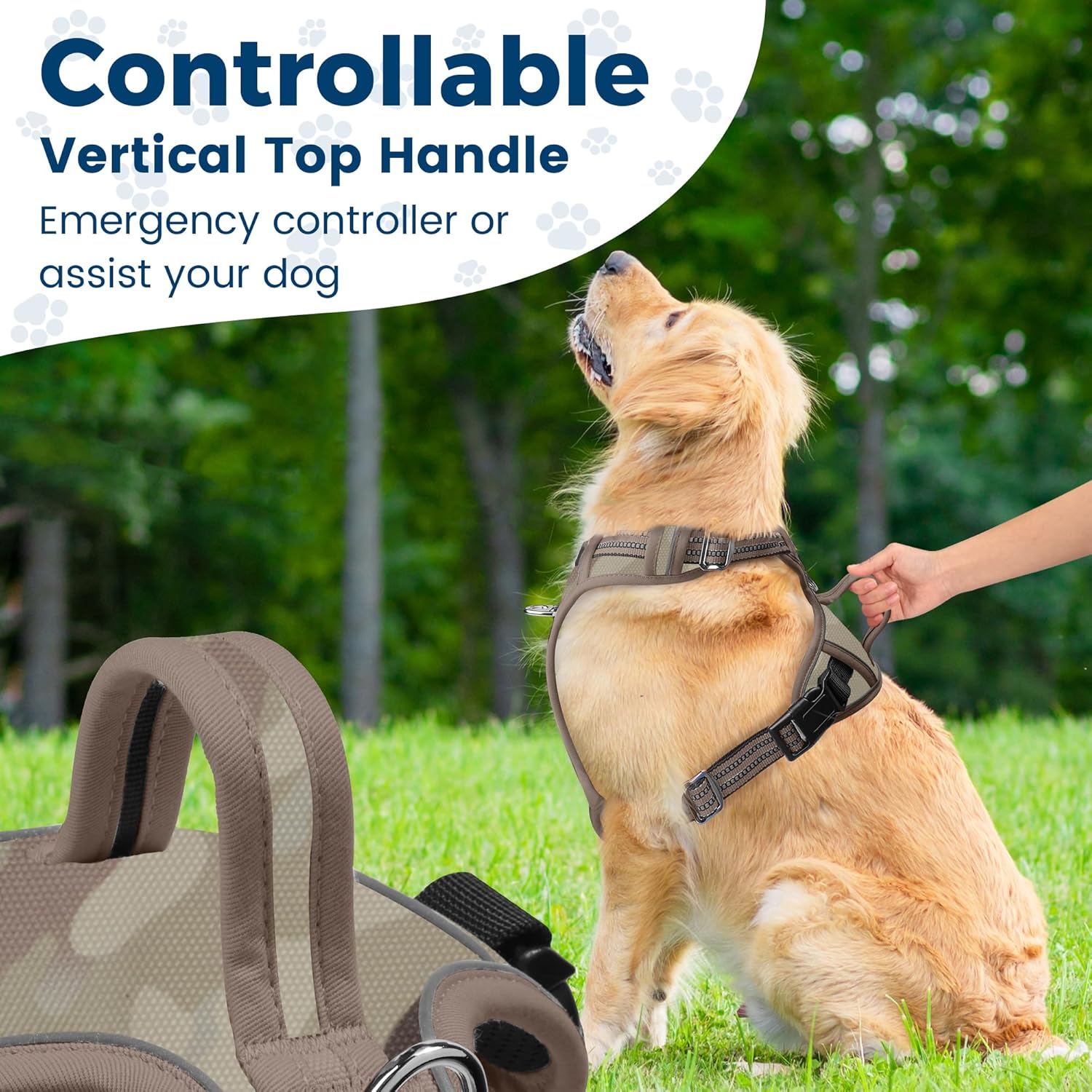 Funfox Dog Harness No Pull, Adjustable Pet Vest Harness, Super Soft Material with Vertical Handle Easy Control, Reflective Night Walking, 2 Leash Clips for XLarge Dogs, Camo Brown, XL