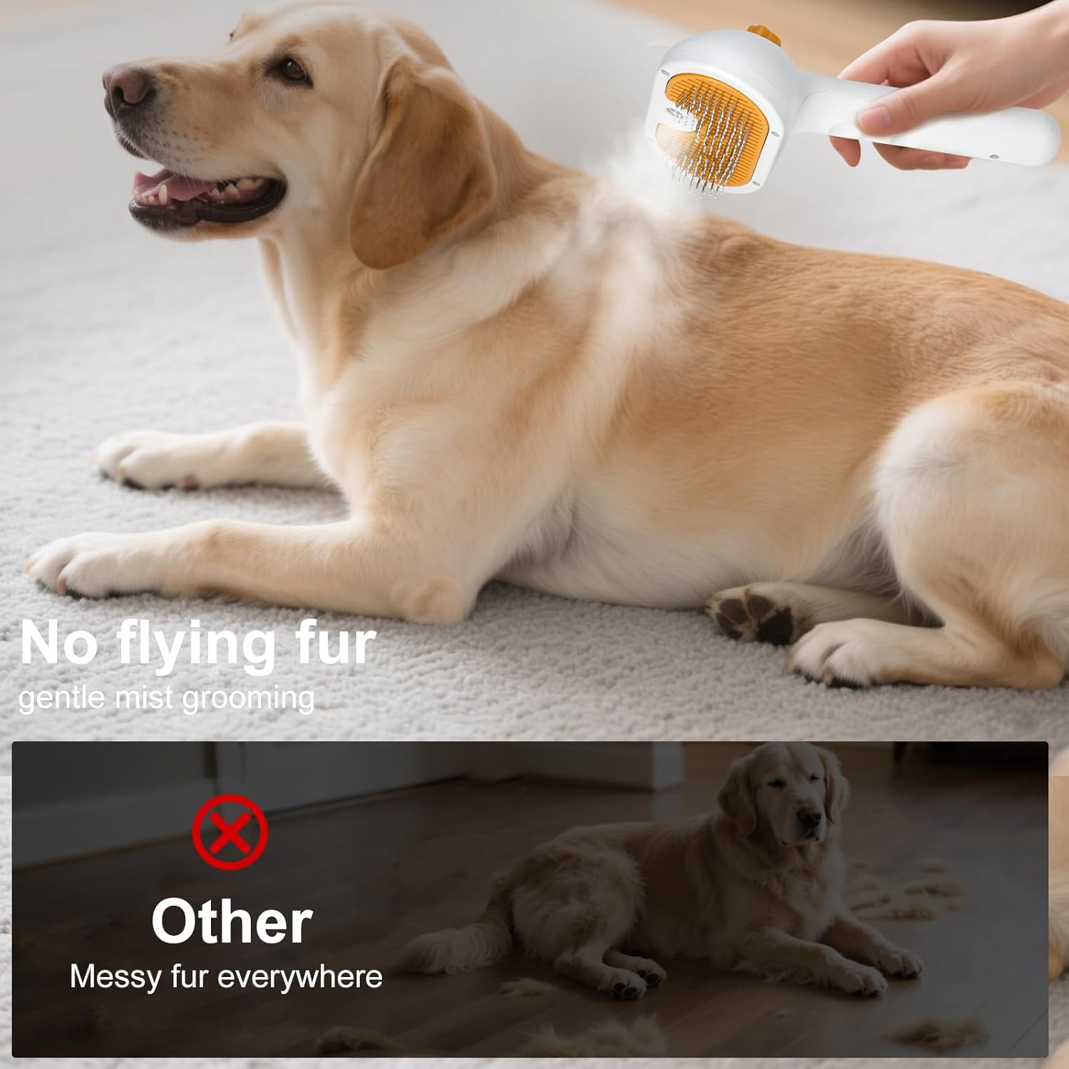 3-in-1 Pet Steam Brush Set for Dogs & Cats, Grooming Comb with Spray, Defur Tool, Water-Assisted Hair Removal, Spritz Brush, Multi-Purpose Kit, Undercoat Rake, Deshedding Brushes, Dematting Brush.