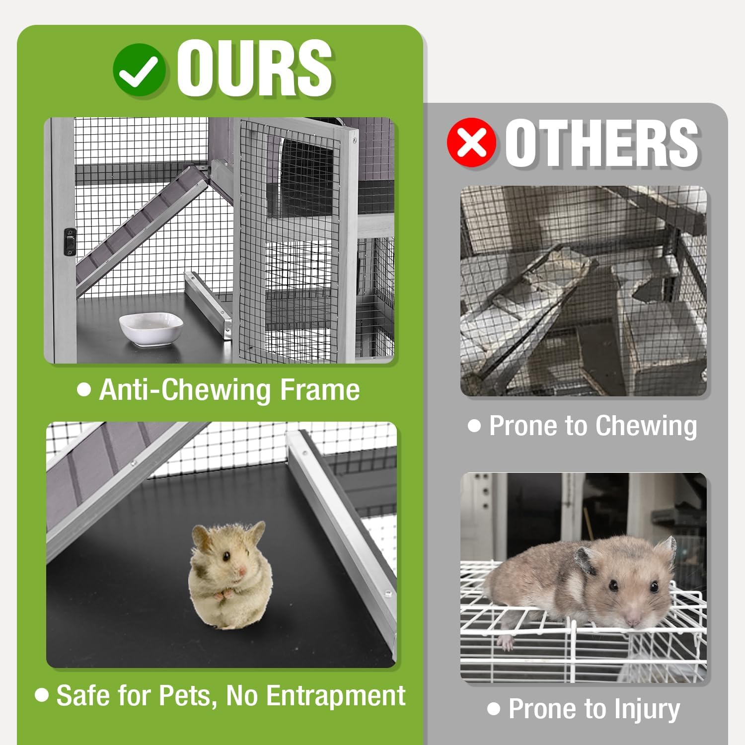 - 【Anti-Chewing】🚪To address the natural chewing behavior of small animals, the edges of the ramps and platforms are covered with a durable aluminum alloy material. This chew-resistant coating helps prevent your pets from damaging the cage while keeping your animals safe.