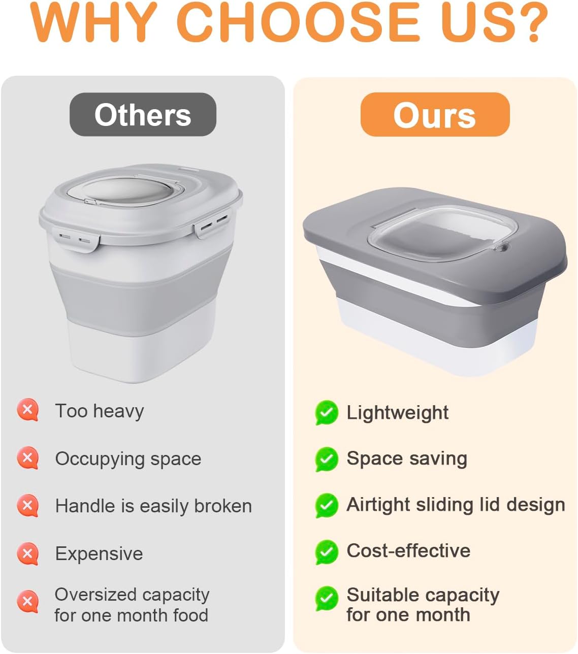 - Space Saving: Our pet food container is collapsible and can be resized to pet food storage as needed. Whether at home or on the go, itβs designed to make pet care easier and more enjoyable