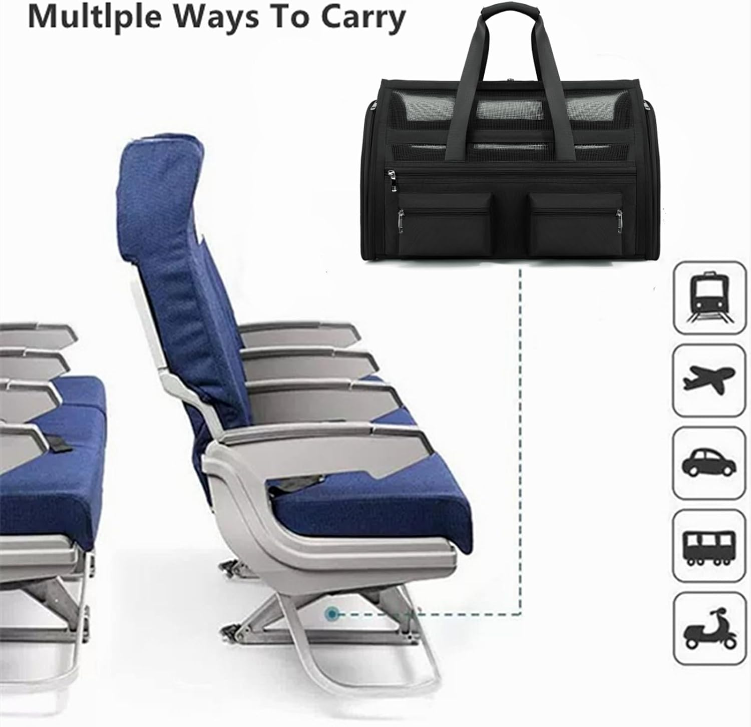- [AIRLINE APPROVED] This cat carrier is designed with airline approved, it can fit comfortably under most flight seats, we can take our pets wherever we want. Dog travel carrier offers two attachment loop handles that can be used as a dual harness or as a luggage strap for balanced carry and secure transport.