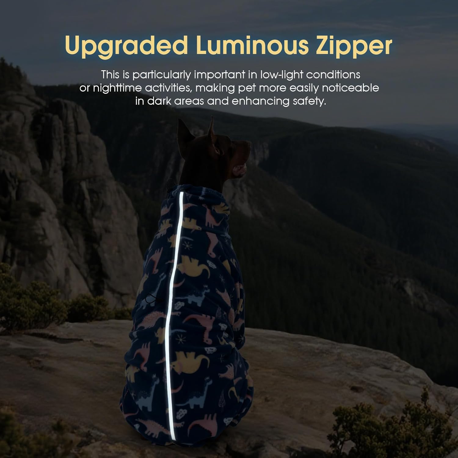 ROZKITCH Dog Clothes Large Sized Pajamas, Pet Windproof Warm Cold Weather Jacket Vest with Reflective Zipper, Jumpsuit Apparel Outfit Clothes for Medium Dog Dinosaur L