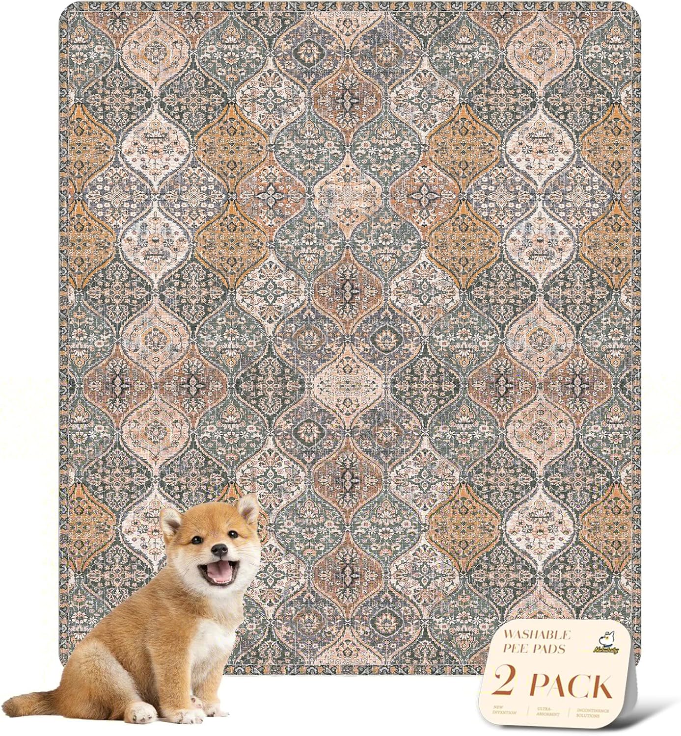 nunubaby Washable Pee Pads for Dogs, Stylish, Non-Slip and Leak-Proof Pee Pads. Reusable Potty Pads for Dogs for Crates and Floors.(Brown/Multi, 31" x36")