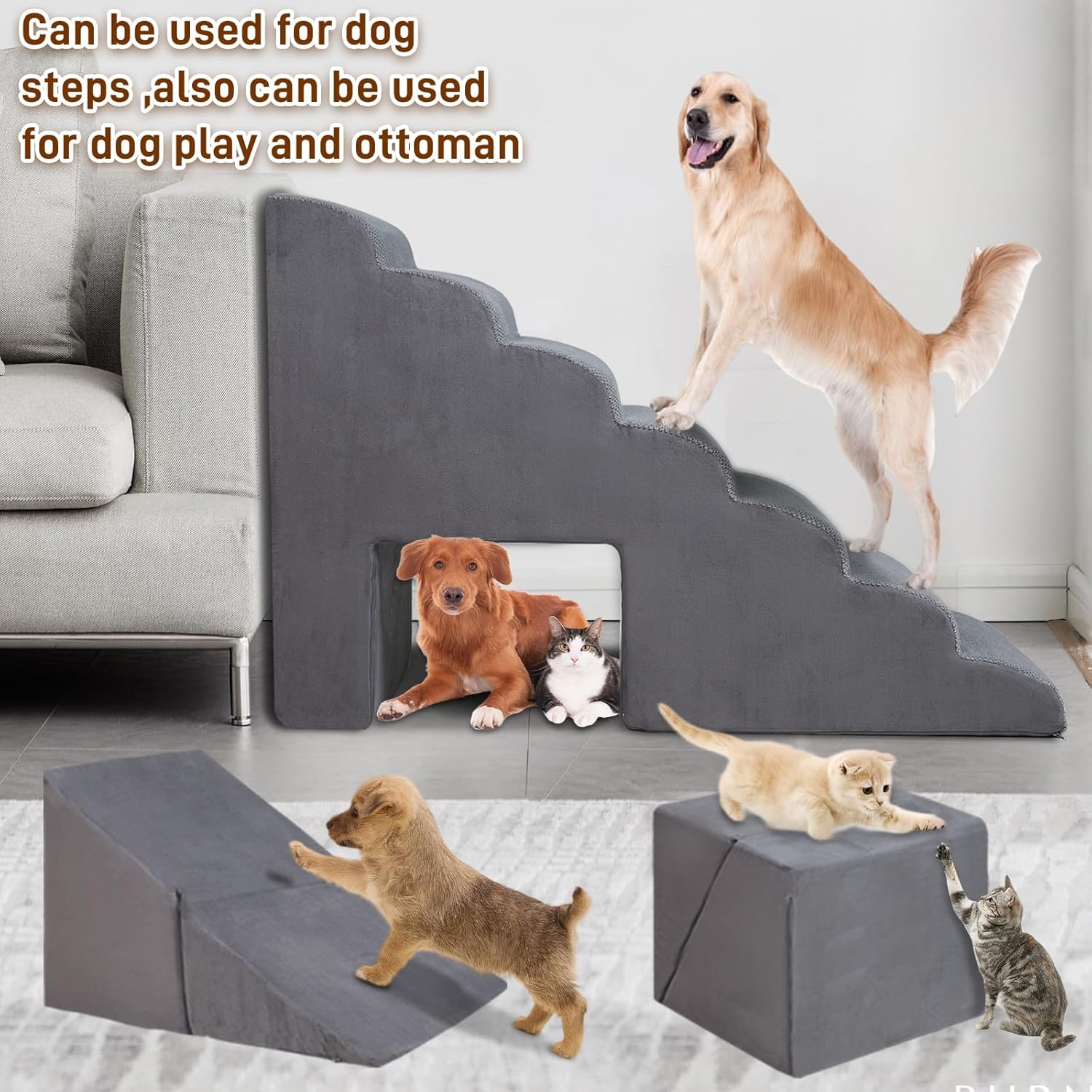 - More Safer,Wider Deeper Dog Steps: The height of the pet foam ladder is 33 in ,we adpoted extra wide deep ,which can be placed next to the car, bed, and sofa to help pets that have limited mobility. More and wider steps help reduce when jumping on the sofa or car pressure,and LitaiL dog steps will not shake and slip during use. The cover made of corduroy is more frictional than other covers, pets will not slip on the stairs