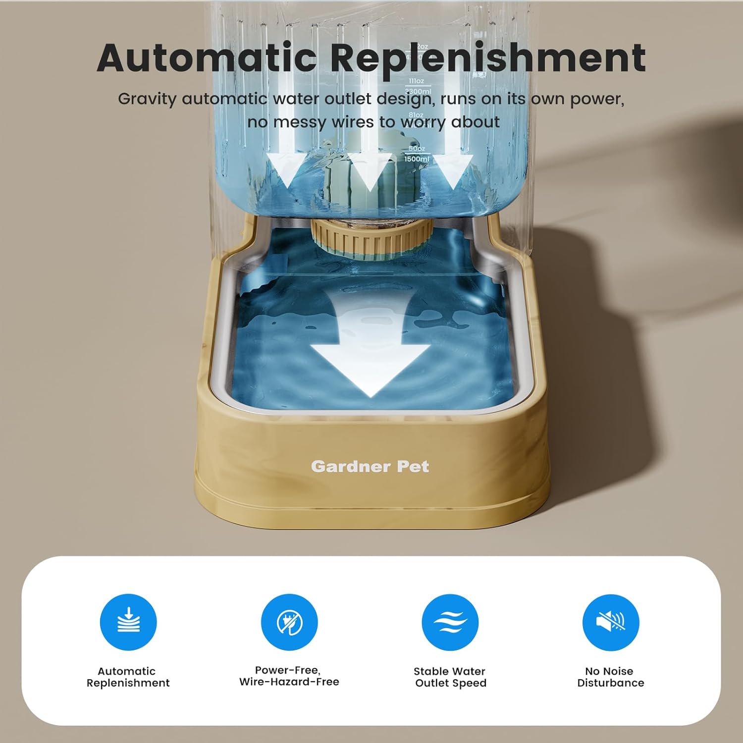 Gardner Pet Automatic Dog Water Dispenser Gravity Waterer with Stainless Steel Bowl Water Dispenser 8.5L Large Capacity Water Feeder for Dogs Cats Pets, BPA-Free Noise-Free (Light Brown, 8.5L)