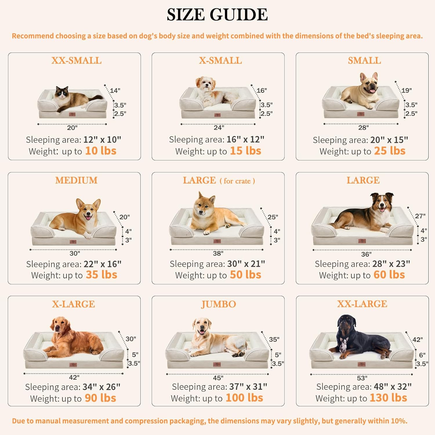 Comfort Expression Small Dog Beds Waterproof Cat Beds Orthopedic Foam Sofa Beds for Small Dogs Comfy Pet Bed with Washable Removable Cover & Non-Slip Bottom(XX-Small,Beige)