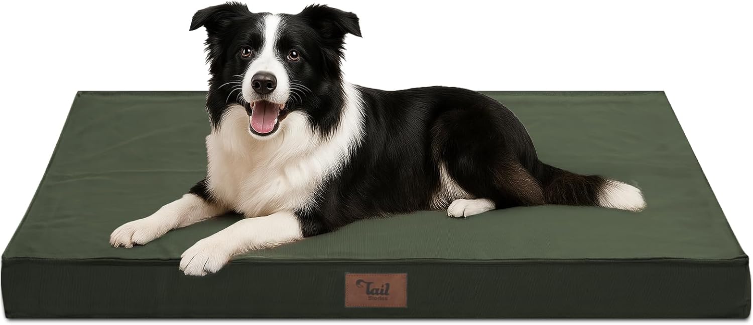- Oxford Fabric: Tail Stories waterproof dog bed is made of 600D oxford fabric with PVC, features in premium-quality, cooling. Suitable for dog crates of 36" x 23"
