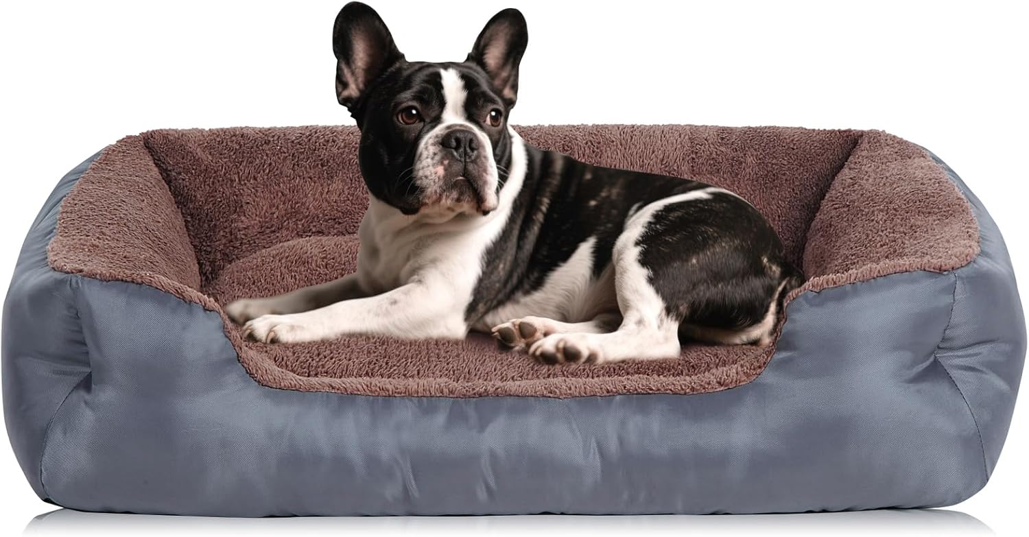 - COMFORT AS PRIORITY: This rectangular dog bed adopts four-sided bolsters wrapping design that provides your pet enough security, help pets fall sleep quickly and deeply. Raised rim provides comfortable support for your petโs neck and head. The low front edge is easy access for your pet, protects your pet's knees and promotes accessibility for pets of all ages