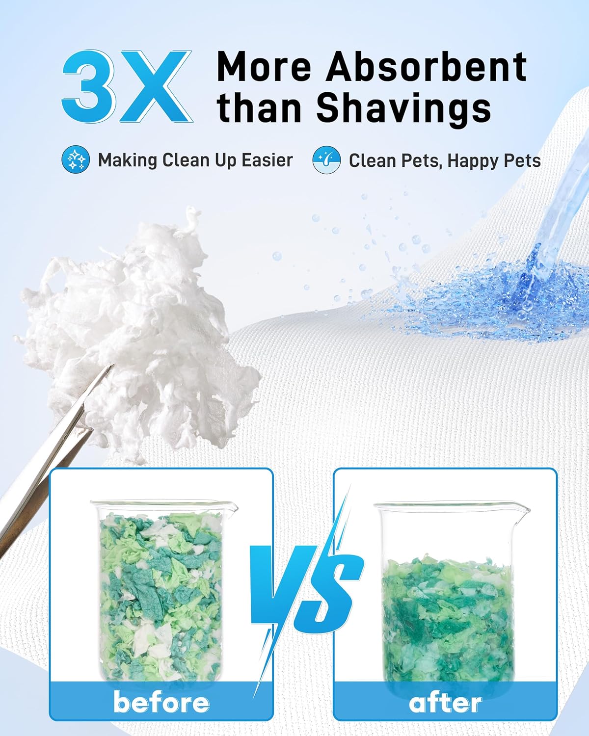 - No Odor Zero Additive - Without any chemical additive, it keeps your pet's habitat smelling fresh and clean for up to 10 days with a natural smell. It's 3x more absorbent, locking away odors and giving you more time to snuggle with your pets instead of cleaning.