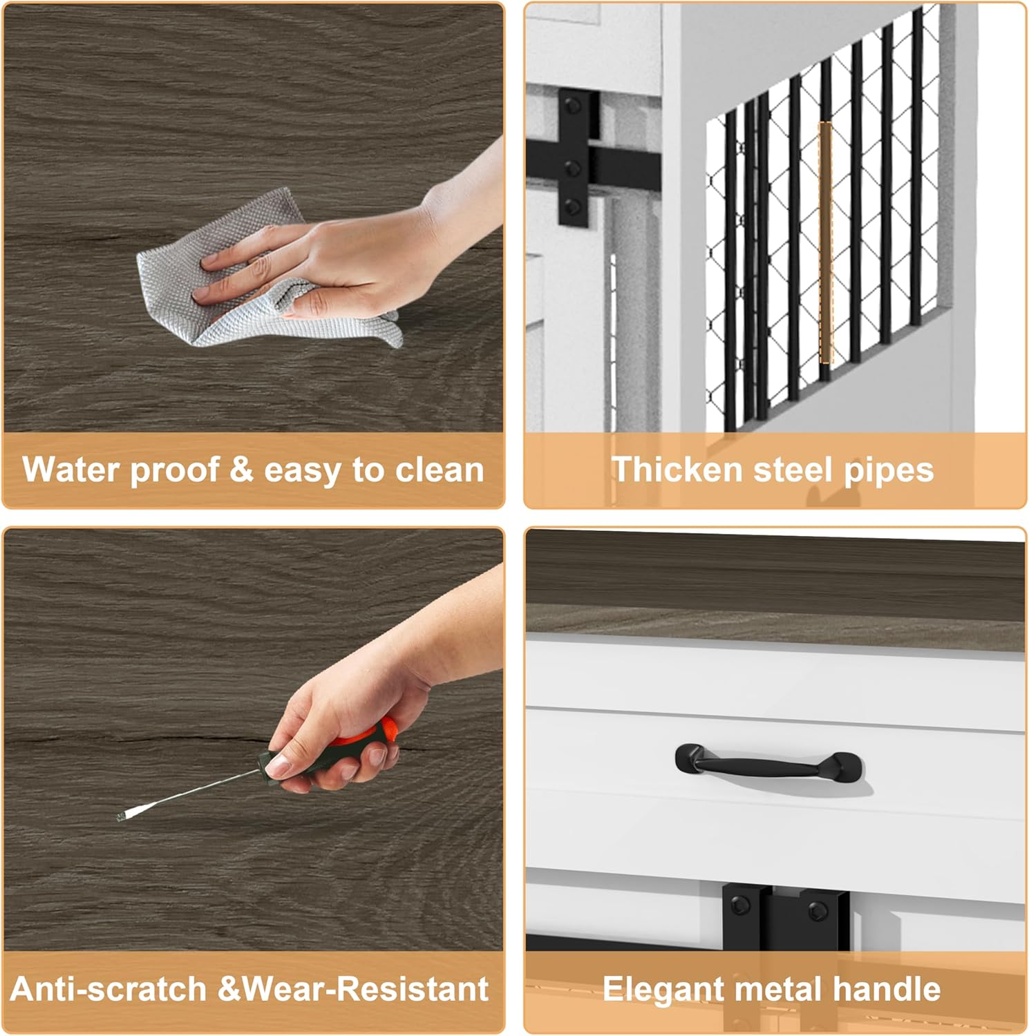 - Easy Assembly and Ample Storage: With three spacious drawers, this dog crate furniture keeps all your pet essentials organized and within reach. Each crate comes with clear instructions for effortless assembly, so youโll have your stylish new dog cage set up in no time!