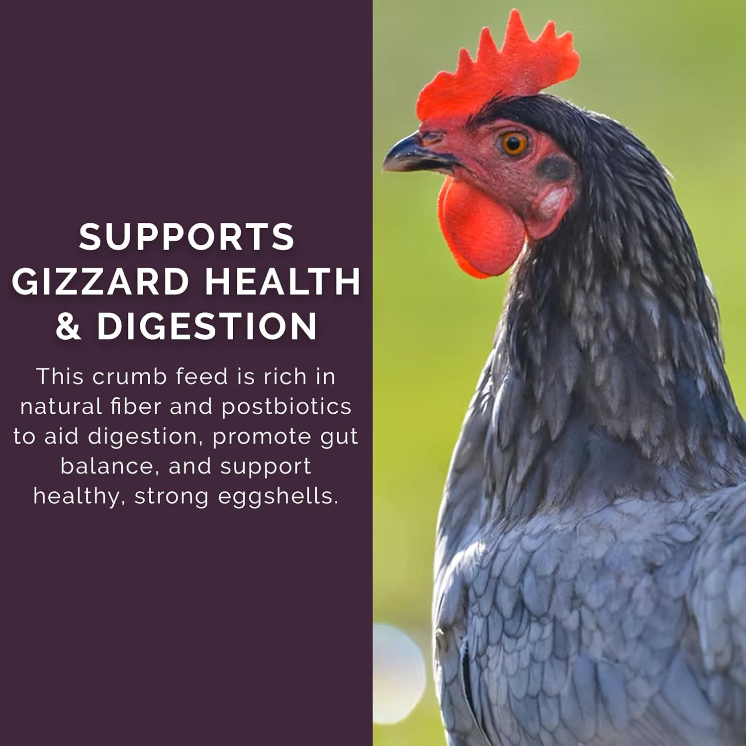 - Supports Gizzard Health & Digestion: This 40-pound bag of crumb feed contains natural fiber and postbiotics that help maintain digestive wellness and support strong eggshells.
