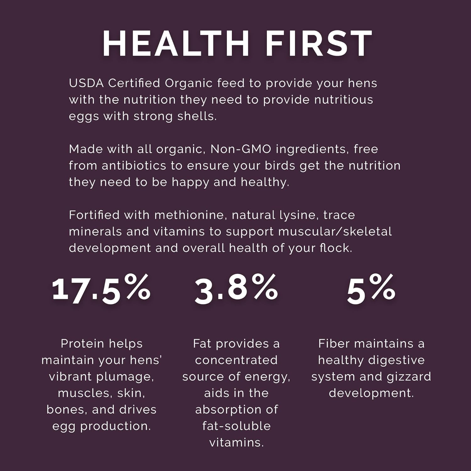 Layer Crumb Feed, 40lbs - Non-GMO, High-Protein Poultry Feed for Healthy Hens & Nutritious Eggs, 17.5% Protein - USDA Certified Organic Blend, Soy & Corn-Free