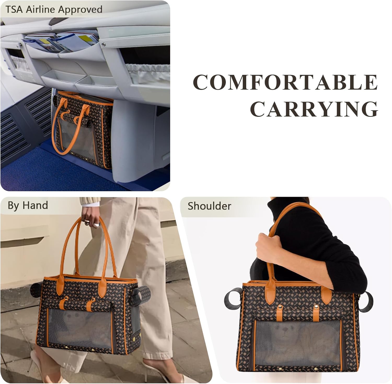 Minsong Fashion Pet Carrier Purse for Small Cat and Dog, Luxury Pu Soft-Sided Tote Bag with Large Pockets for Dogs and Puppies (Coffee, 15.8" L x 7.5" W x 11.8" H)