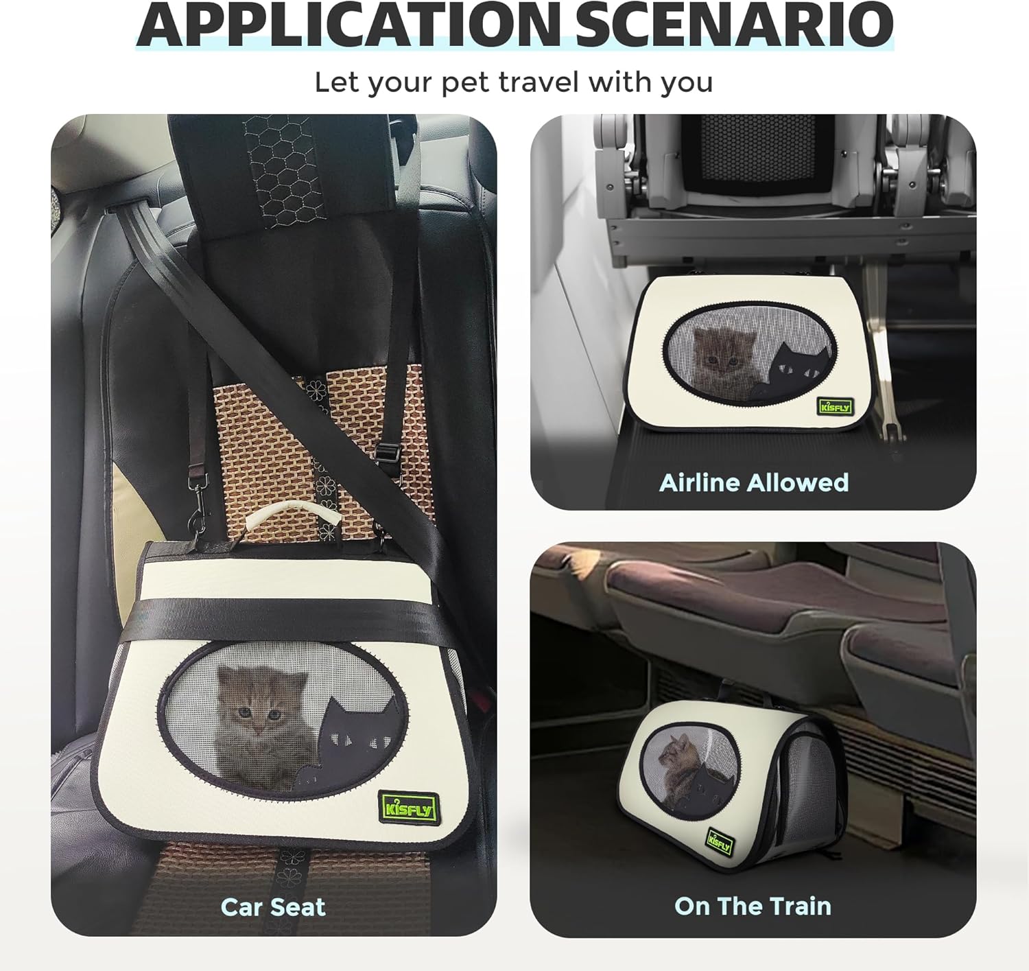 - TSA APPROVED PET CARRIER: This cat carrying bag is light and comfortable, suitable for outdoor activities. It is also a perfect travel carrier by car, train, plane, etc. The size of this airline approved cat carrier is suitable for most airlines such as Delta Airlines, American Airlines, United Airlines etc. However, there are differences and changes in the standards of each airline. It is recommended to check the regulations of specific airlines before travel.