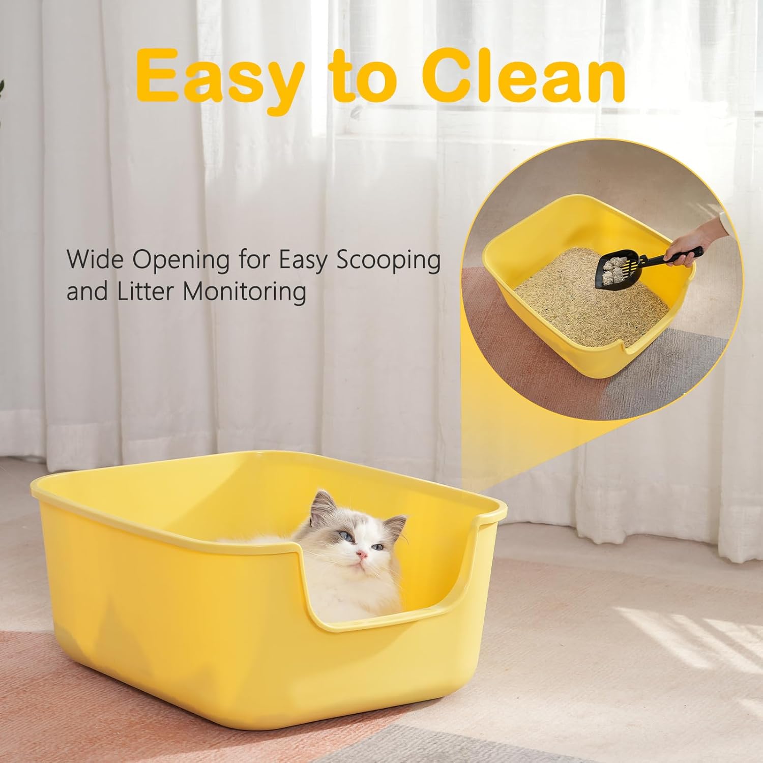 - 【Low Entry for Easy Access】 The low entry of this cat litter pan makes it perfect for kittens, senior cats, and cats with limited mobility. Whether you're caring for a playful kitty or an elderly cat, this kitty litter box provides easy access, ensuring your cat can use it comfortably and independently.